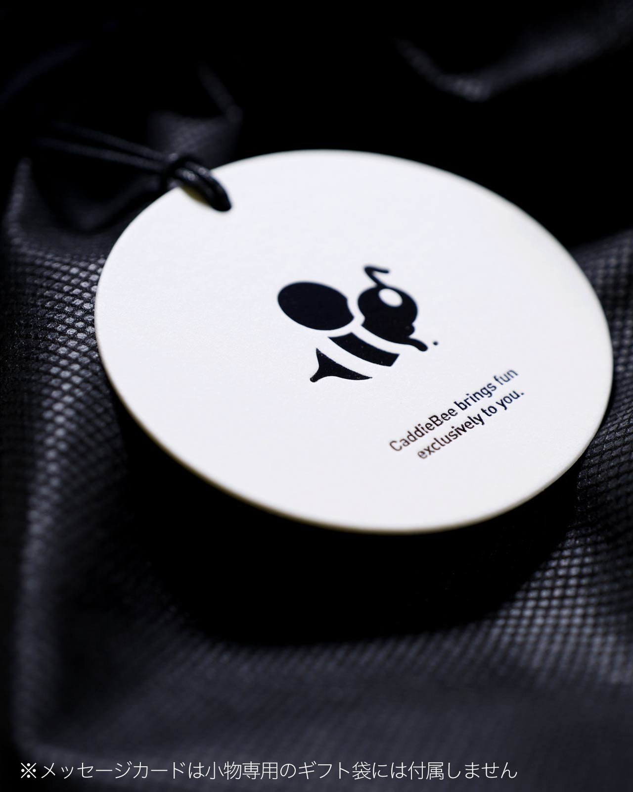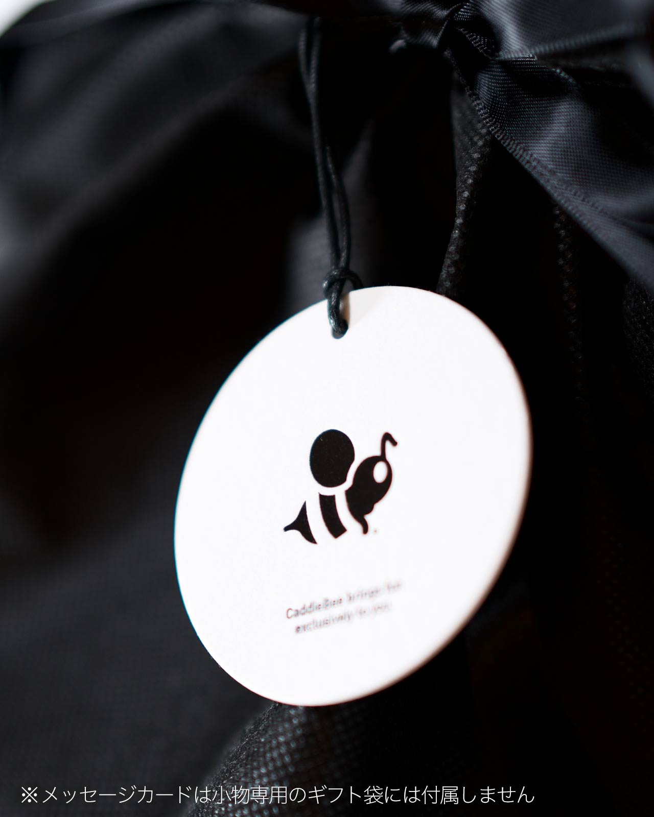 箔押し印刷によるCaddieBeeのマークが入った丸いタグ付き。裏面にはメッセージを書き込むことも出来ます。
