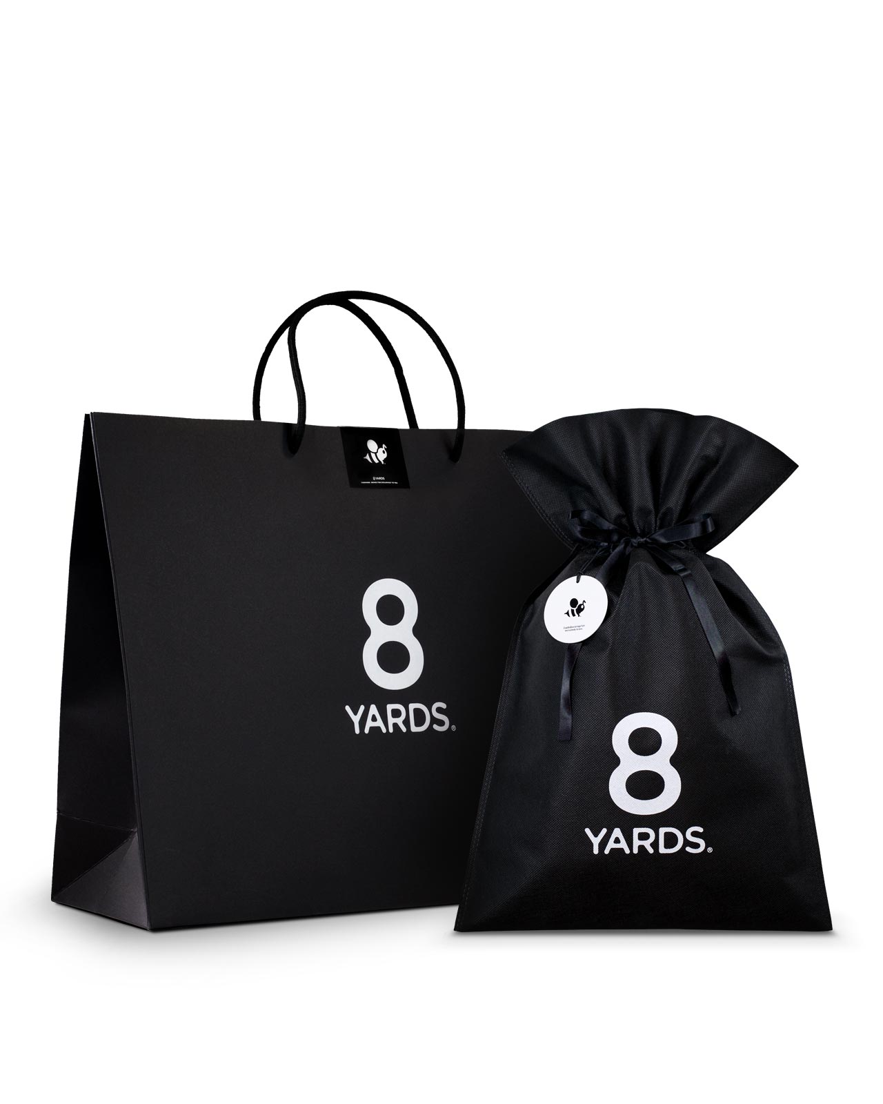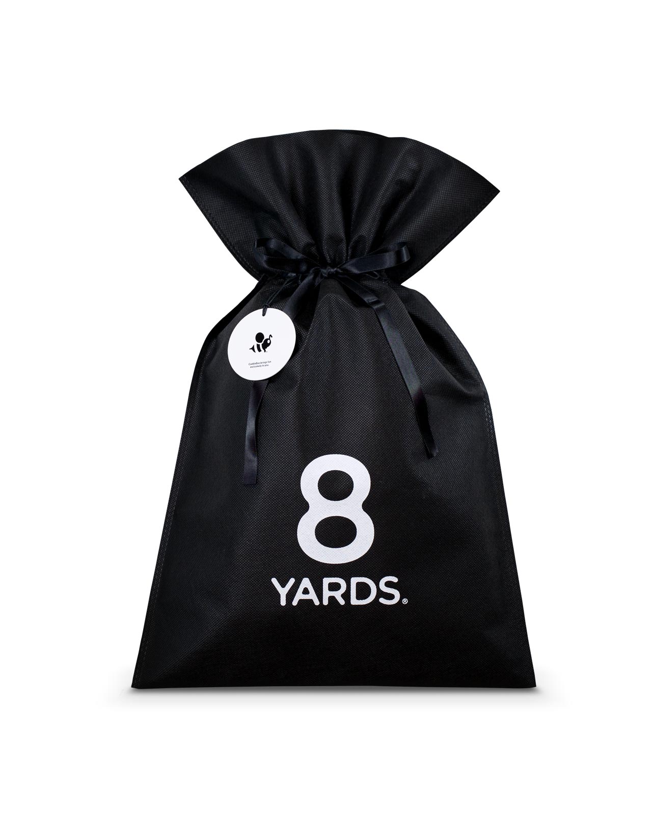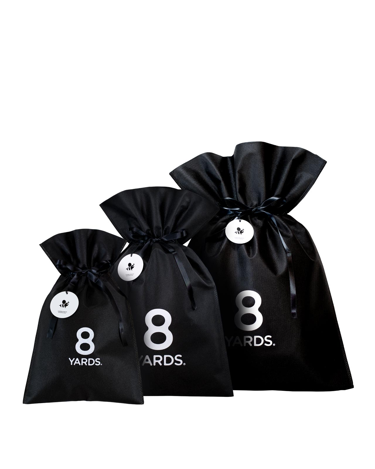 リボン付き・8YARDSロゴ入りの不織布の巾着袋。