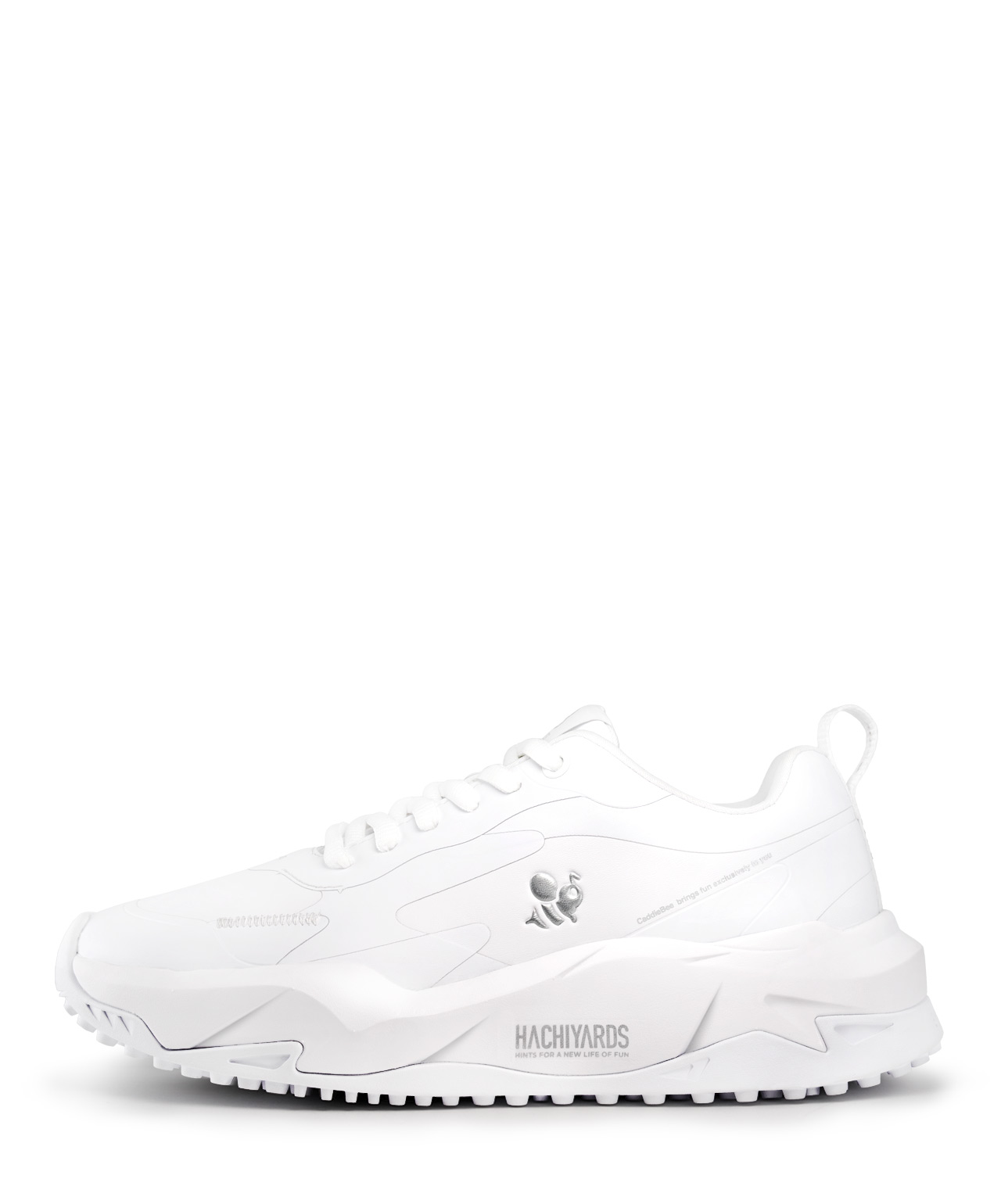 厚底で印象的なヒールデザイン。ソリッドなミッドソールに、大胆なCaddieBeeをあしらったアウトソール。全てが一体となったSKYPATHは、ゼロベースで作るからこそ出来たデザイン。随所に8YARDSらしさを散りばめ、シューズでしか実現できない「らしさ」を凝縮しました。