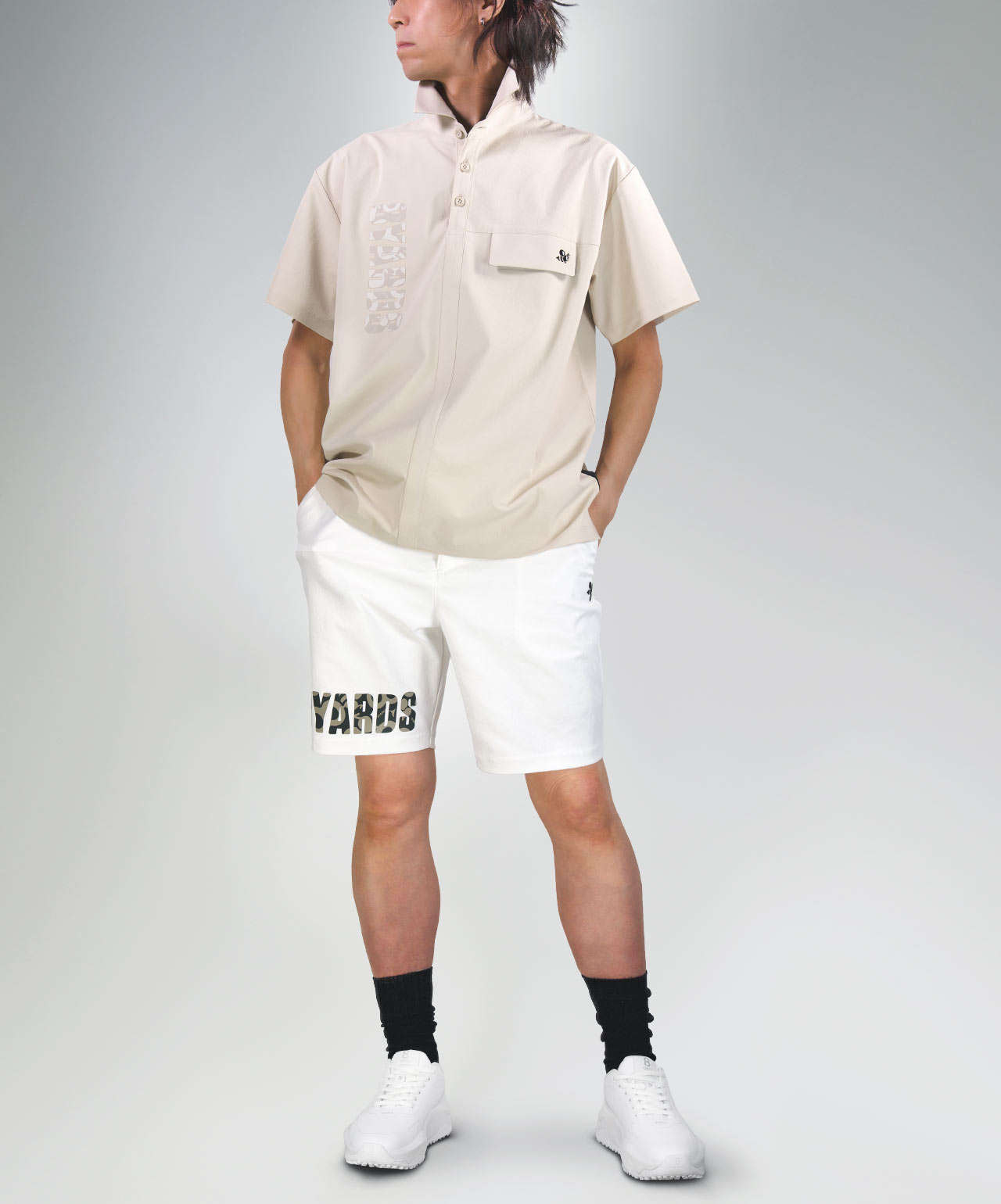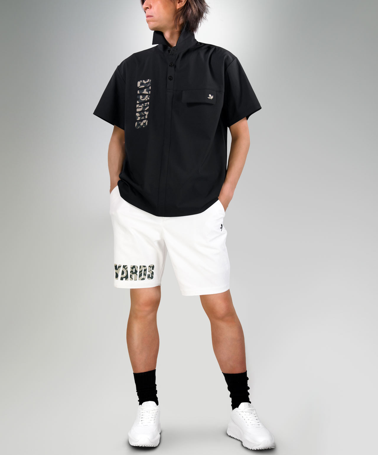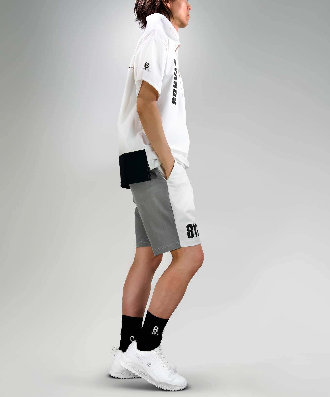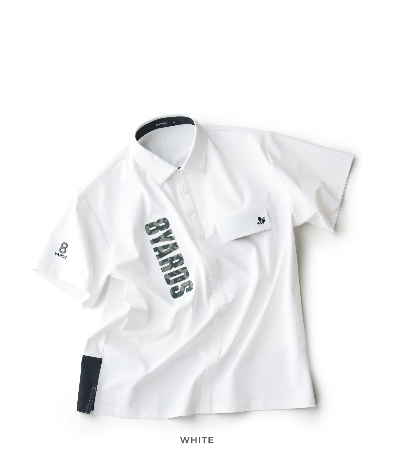 背面の裾にはインパクトのある配色を入れ、ヨーク部分には8YARDSの代名詞TAGLINEをシリコンで配置。胸元にはフラップポケットが付属し、フラップ部分にワンポイントでCaddieBee、右袖口にオフィシャルな8YARDSロゴをそれぞれ立体パーツで入れ"らしさ"を付加しました。