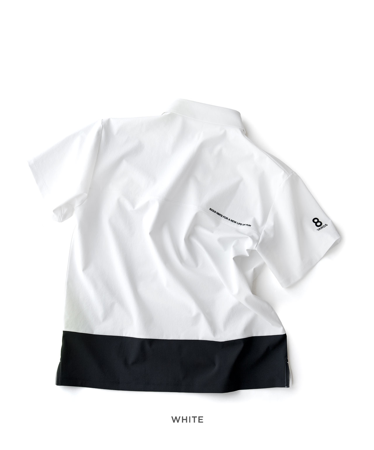 フルダル糸を使用し、速乾性と高いUVカット性能(UPF 50+)、2Wayのストレッチ性を備え、ドライタッチで軽量。肌離れもよくリラックスフィットのサイズ感も相まって、快適な着心地です。トレンドを汲み取ったシルエットがバランスよく融合し、スタイリッシュなコーデを実現します。