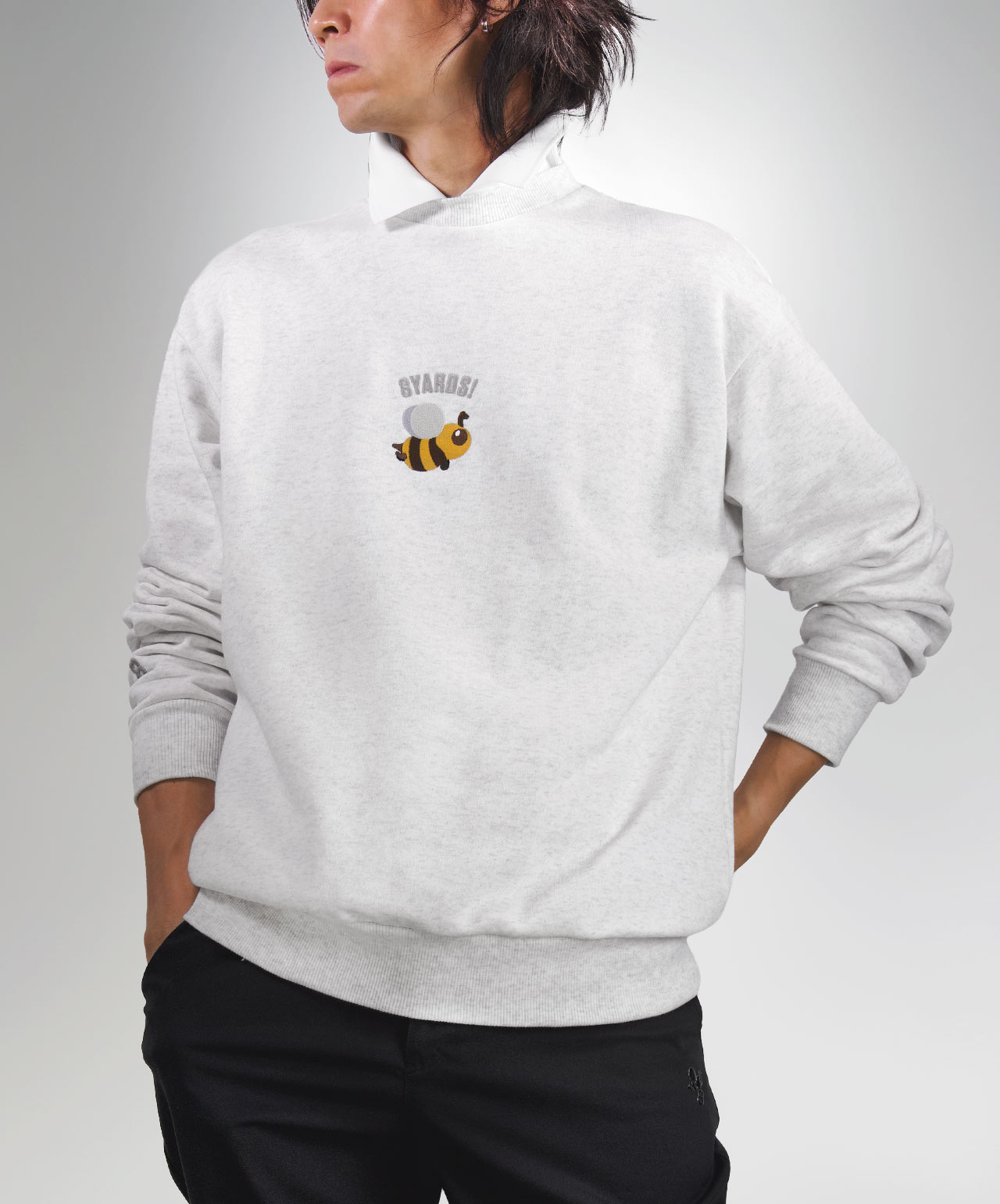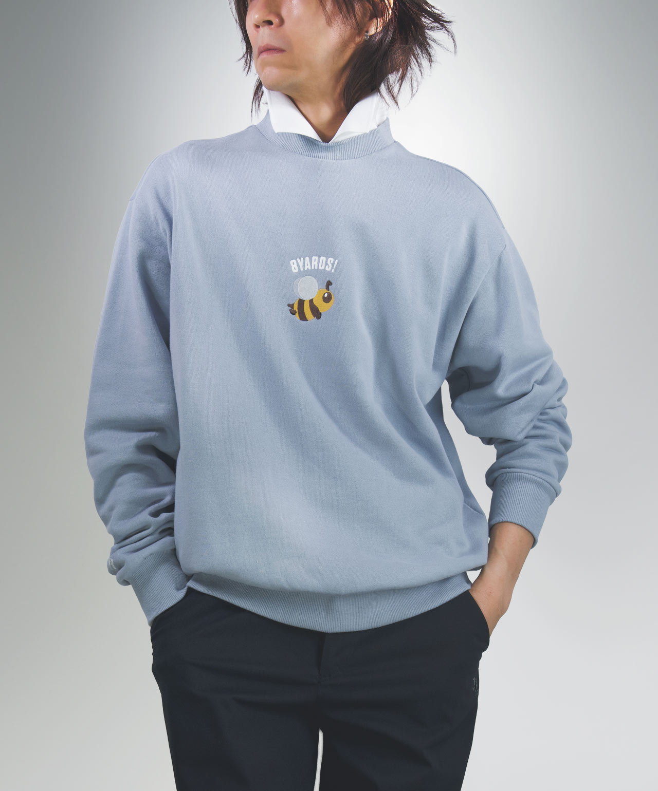 胸元の大きなCaddieBeeを主役にした、クルーネックスウェット初の”襟付き"。