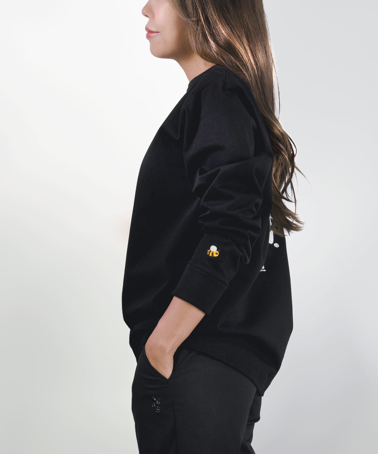 左袖には小さなカラーCaddieBeeの刺繍をワンポイントでオン。ロングスリーブこそ映えるアクセントです。