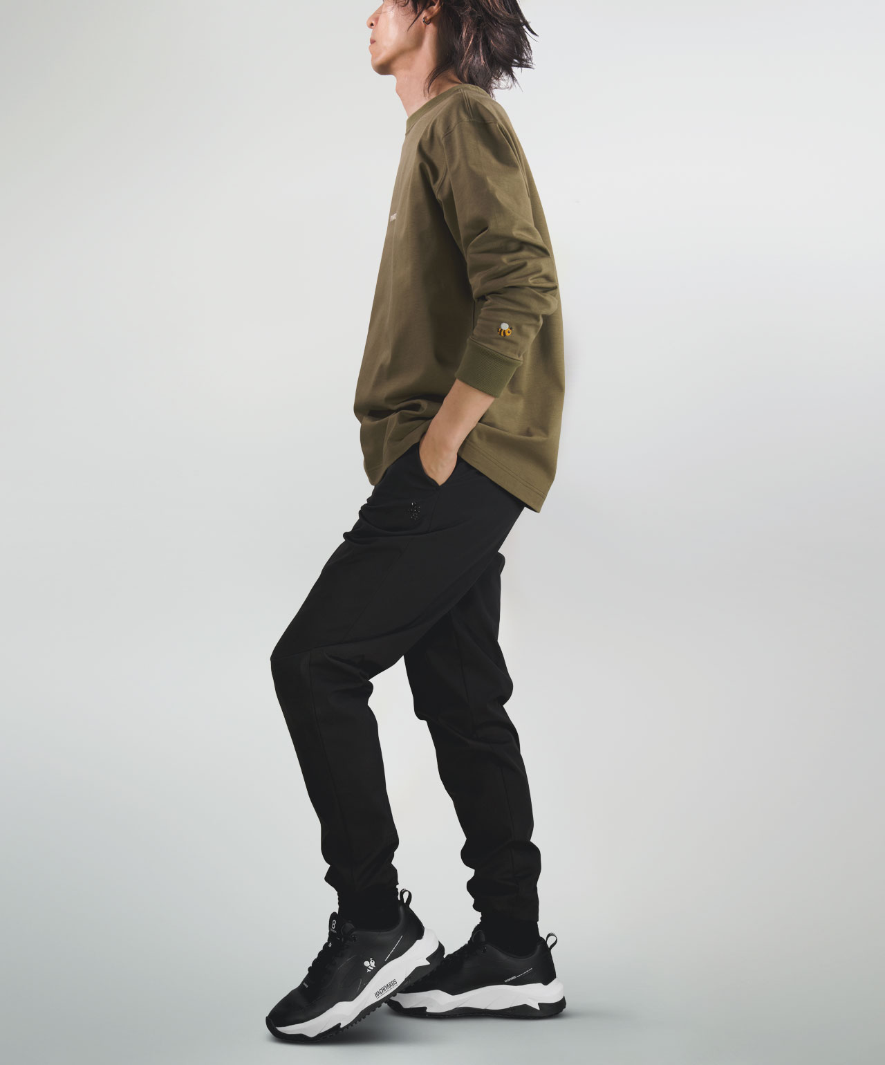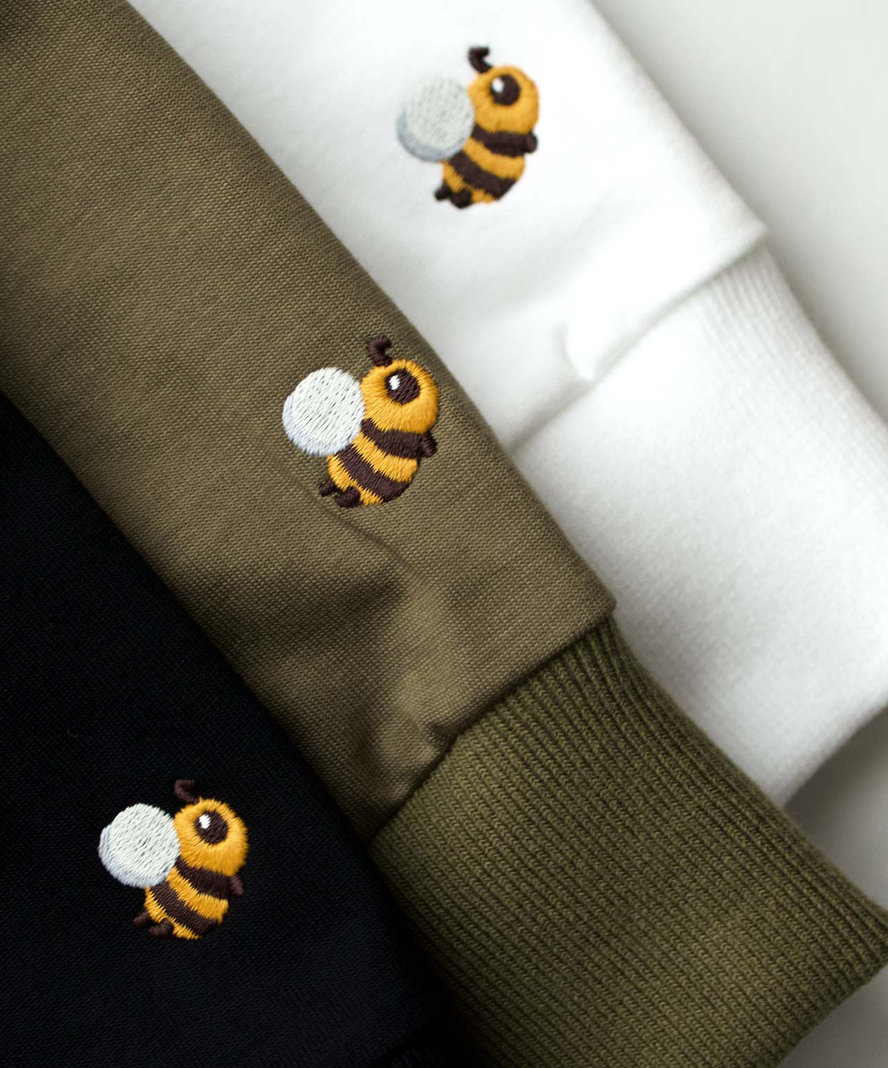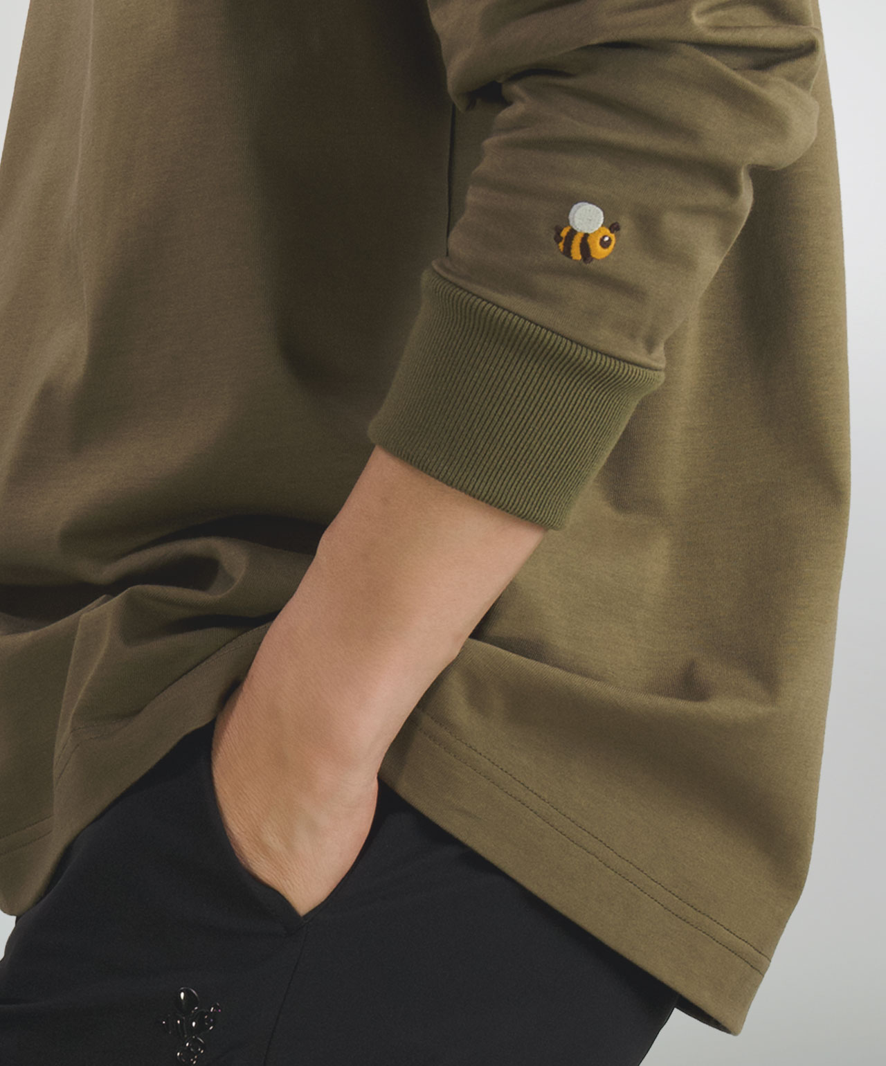 左袖には小さなカラーCaddieBeeの刺繍をワンポイントでオン。ロングスリーブこそ映えるアクセントです。