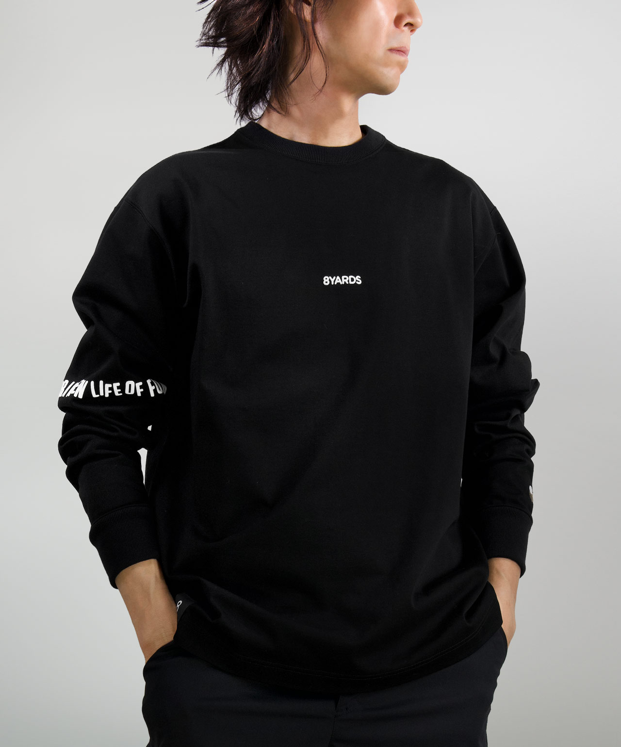リラックスフィットの8Tロングスリーブ。