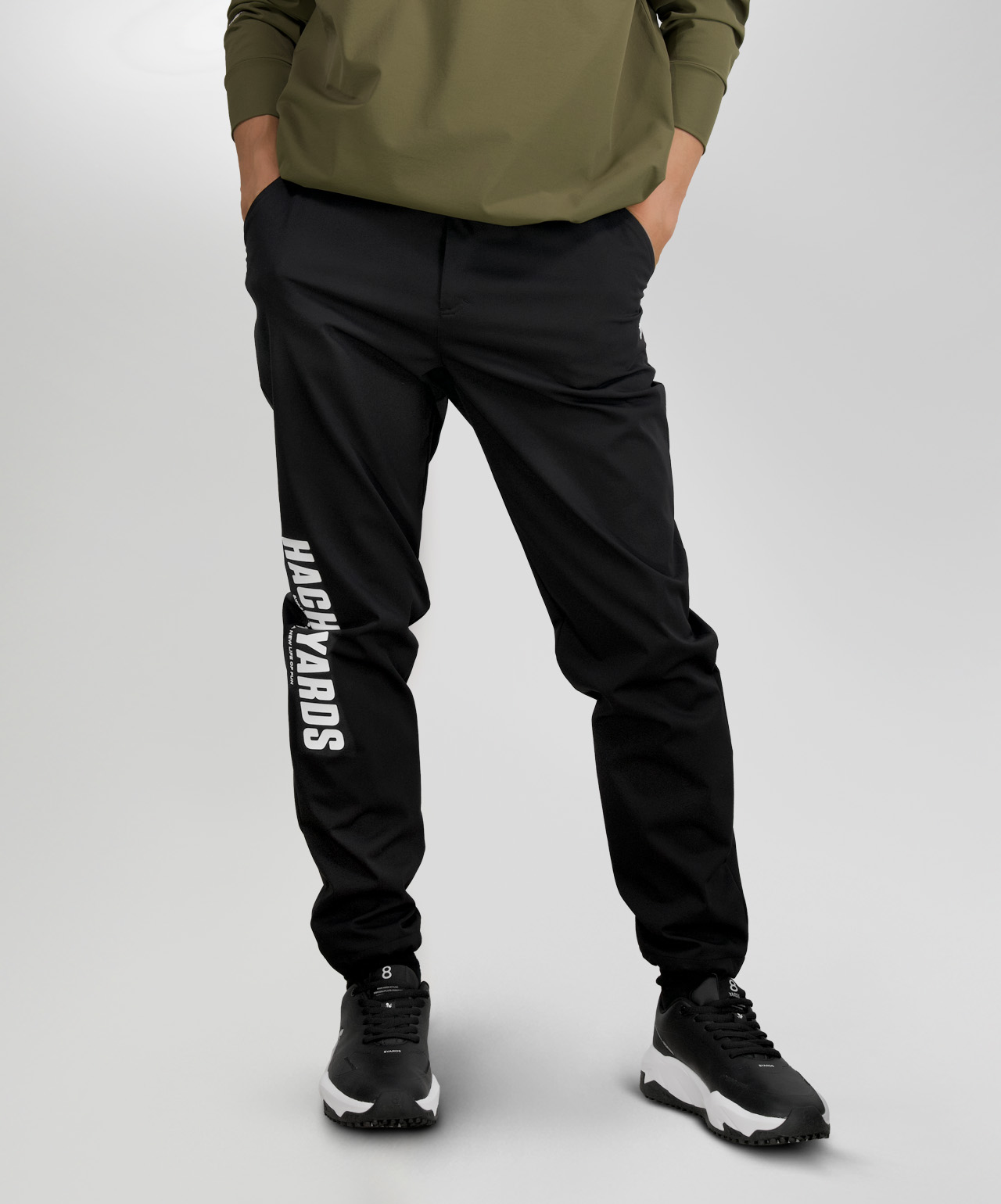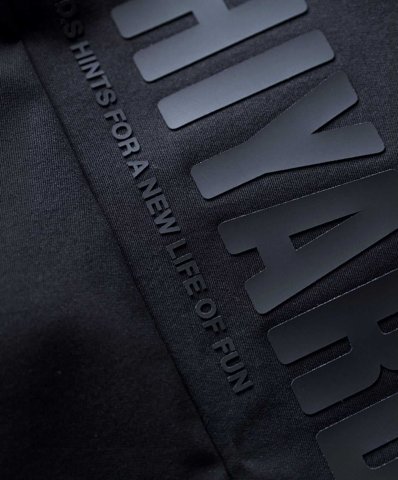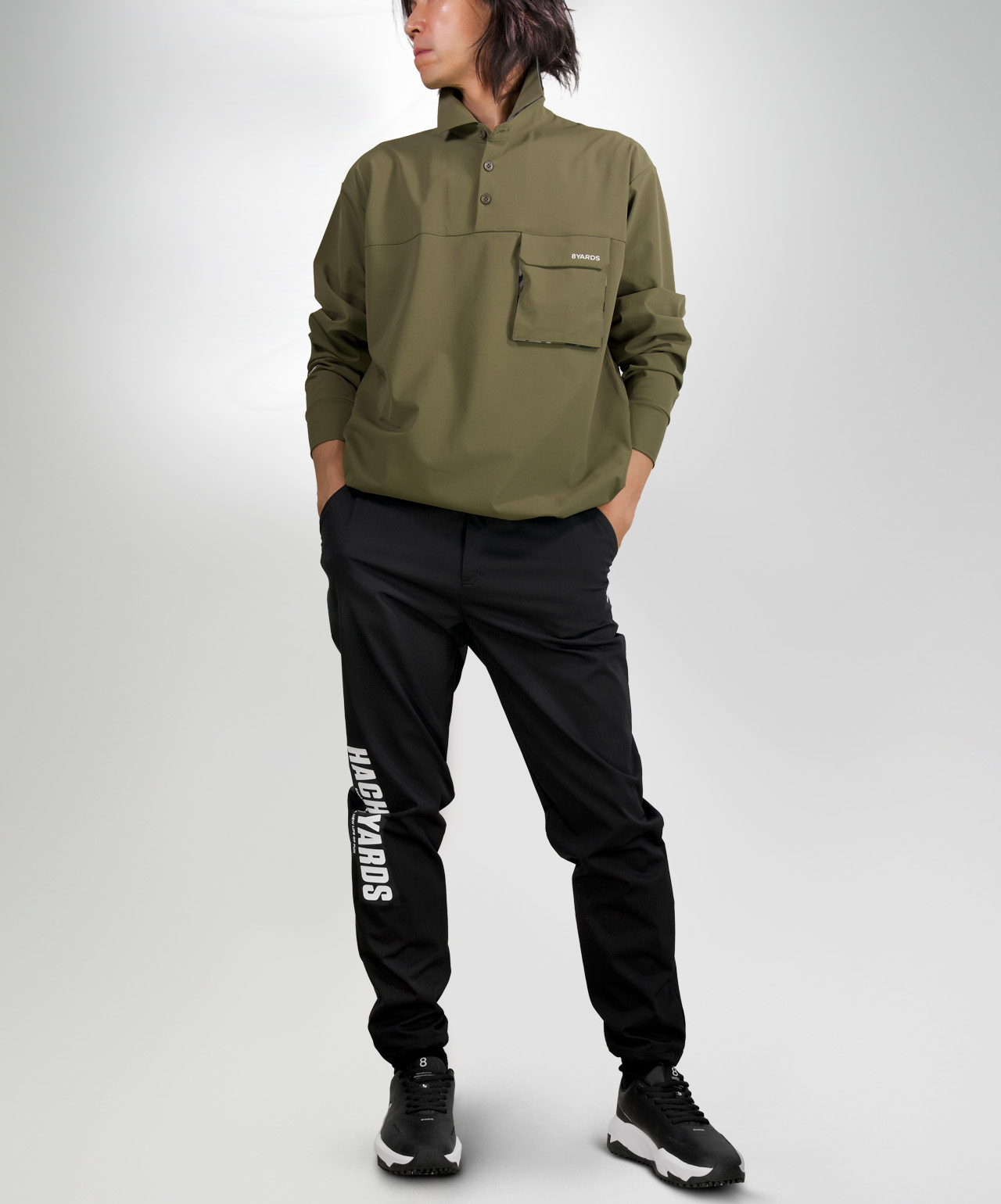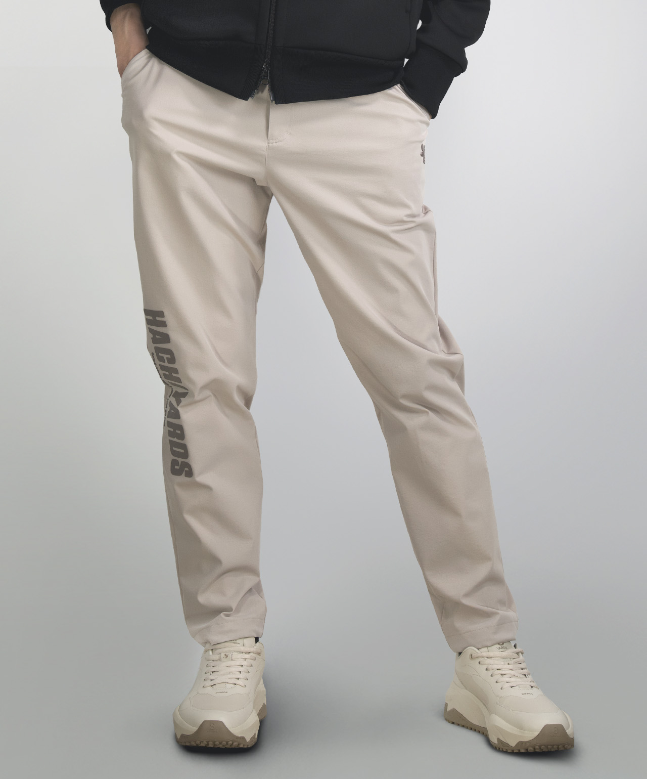 フロントファスナー上部には8YARDSのロゴ入りスナップボタンを初採用。右腿にはHACHIYARDSのビッグタイポをシリコンパーツ同系色で配置した印象的なデザイン。