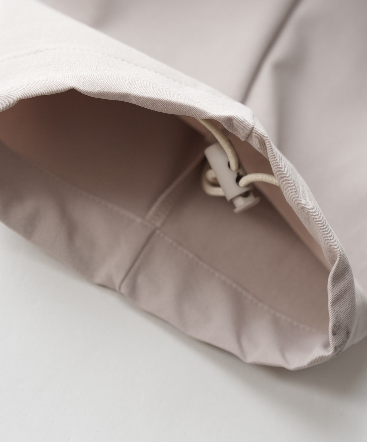 裾のコードを絞り、くるぶし丈にすればカジュアルな印象に。シルエットの変化が楽しめます。