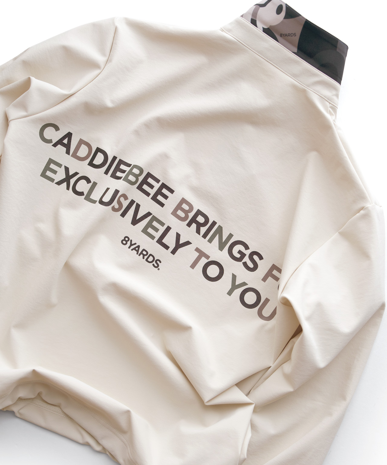 バックデザインはCaddieBeeのコンセプトワードをマルチカラーのタイポグラフィで配置。