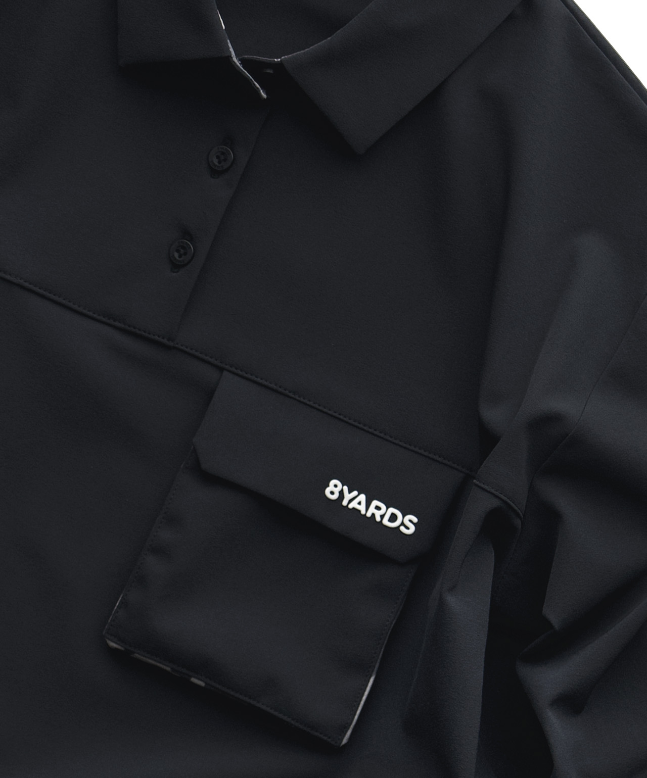 フロントにはマチ付きフラップポケット、裾はドローコードが付属するテクニカル・ロングスリーブシャツ。