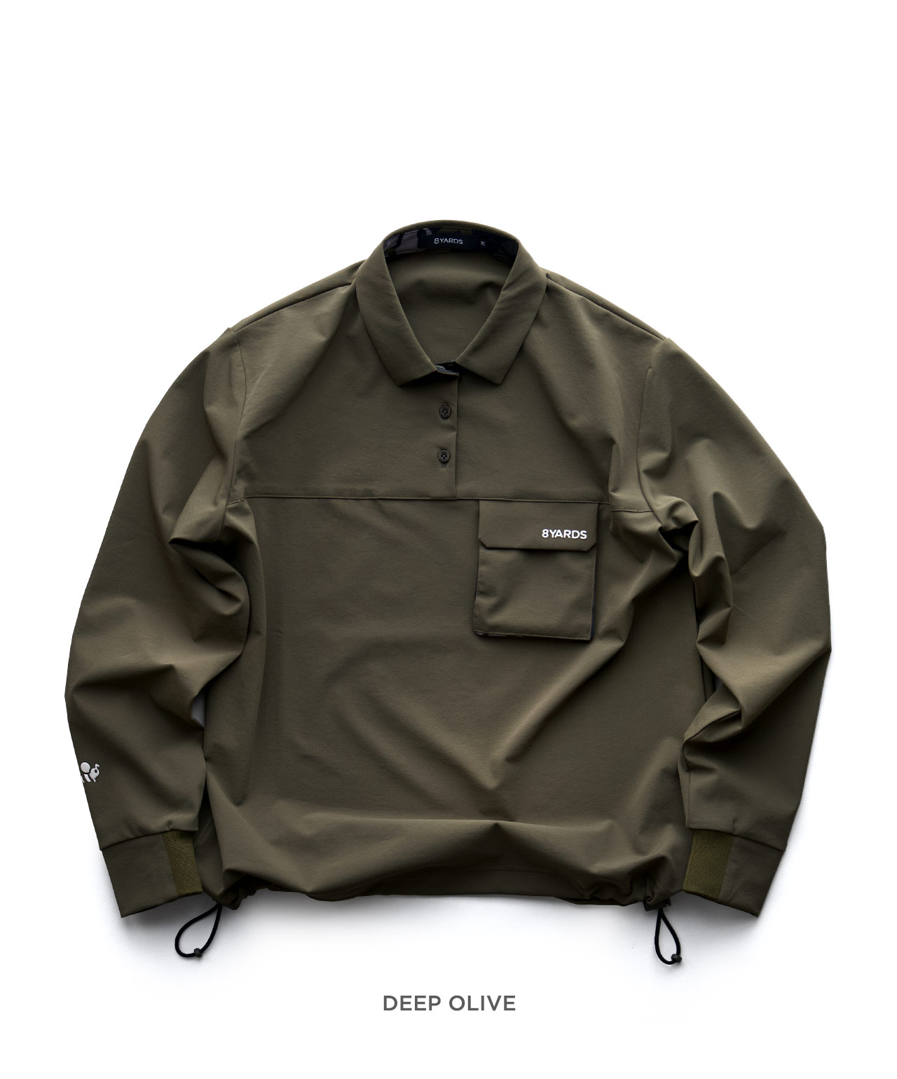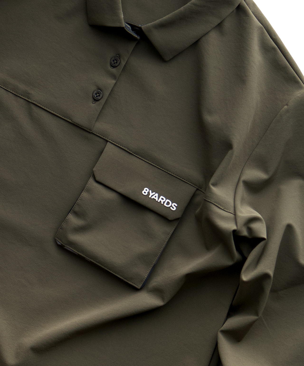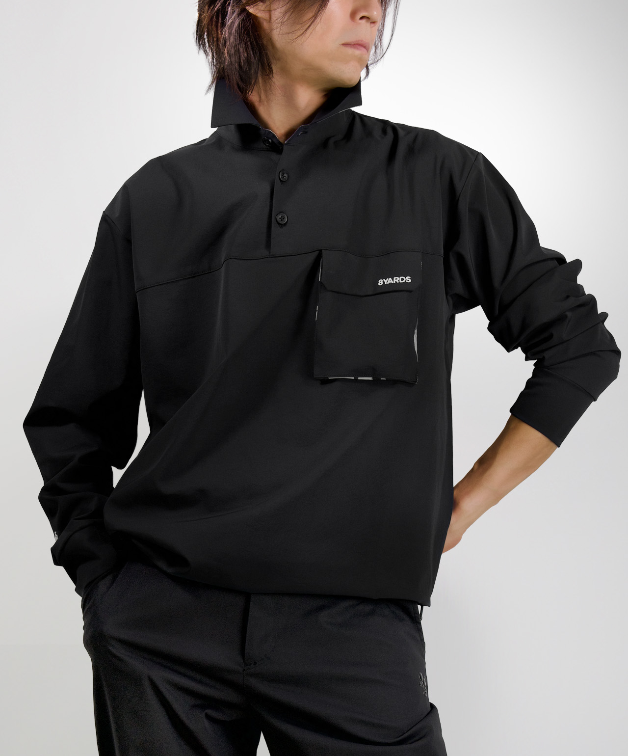 フロントにはマチ付きフラップポケット、裾はドローコードが付属するテクニカル・ロングスリーブシャツ。