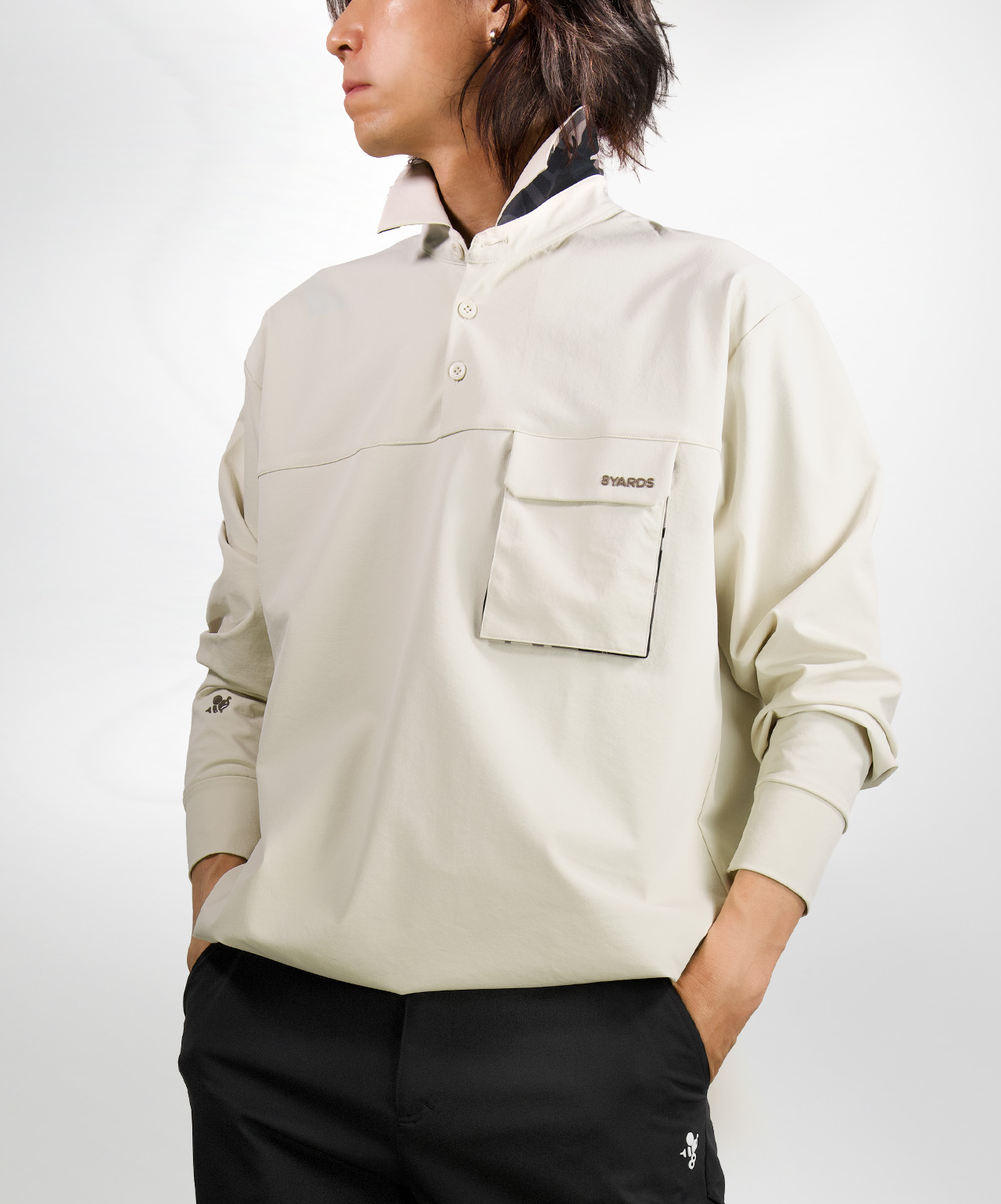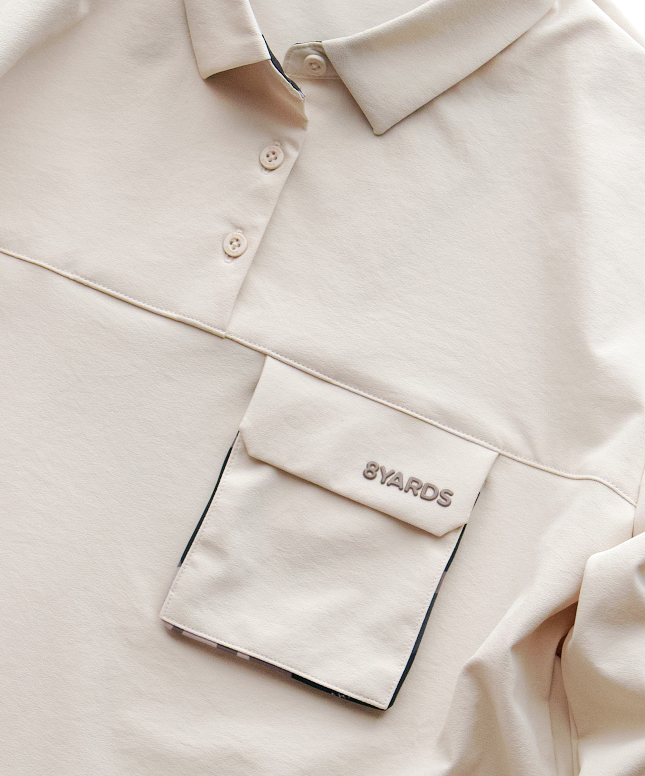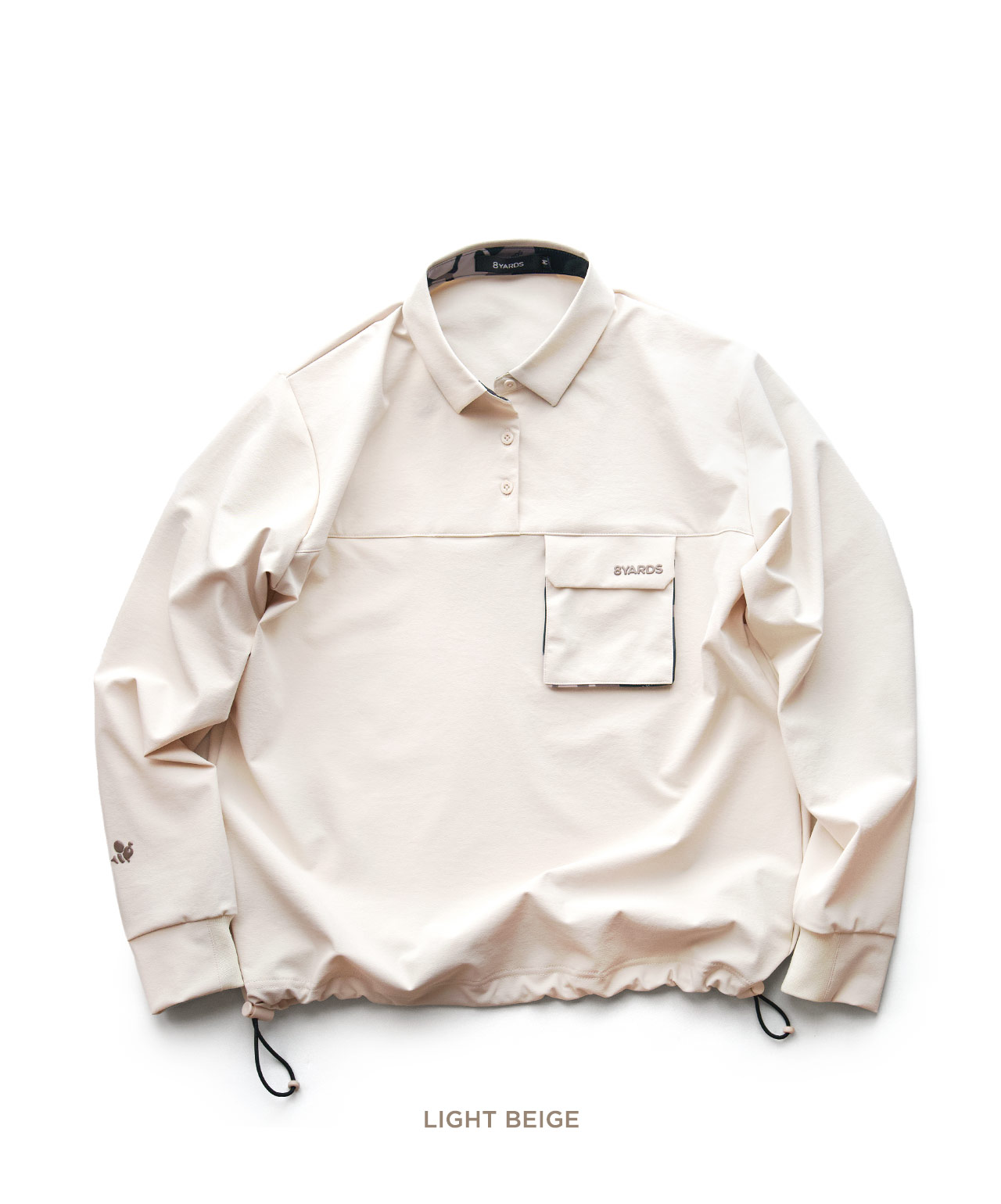 フロントにはマチ付きフラップポケット、裾はドローコードが付属するテクニカル・ロングスリーブシャツ。