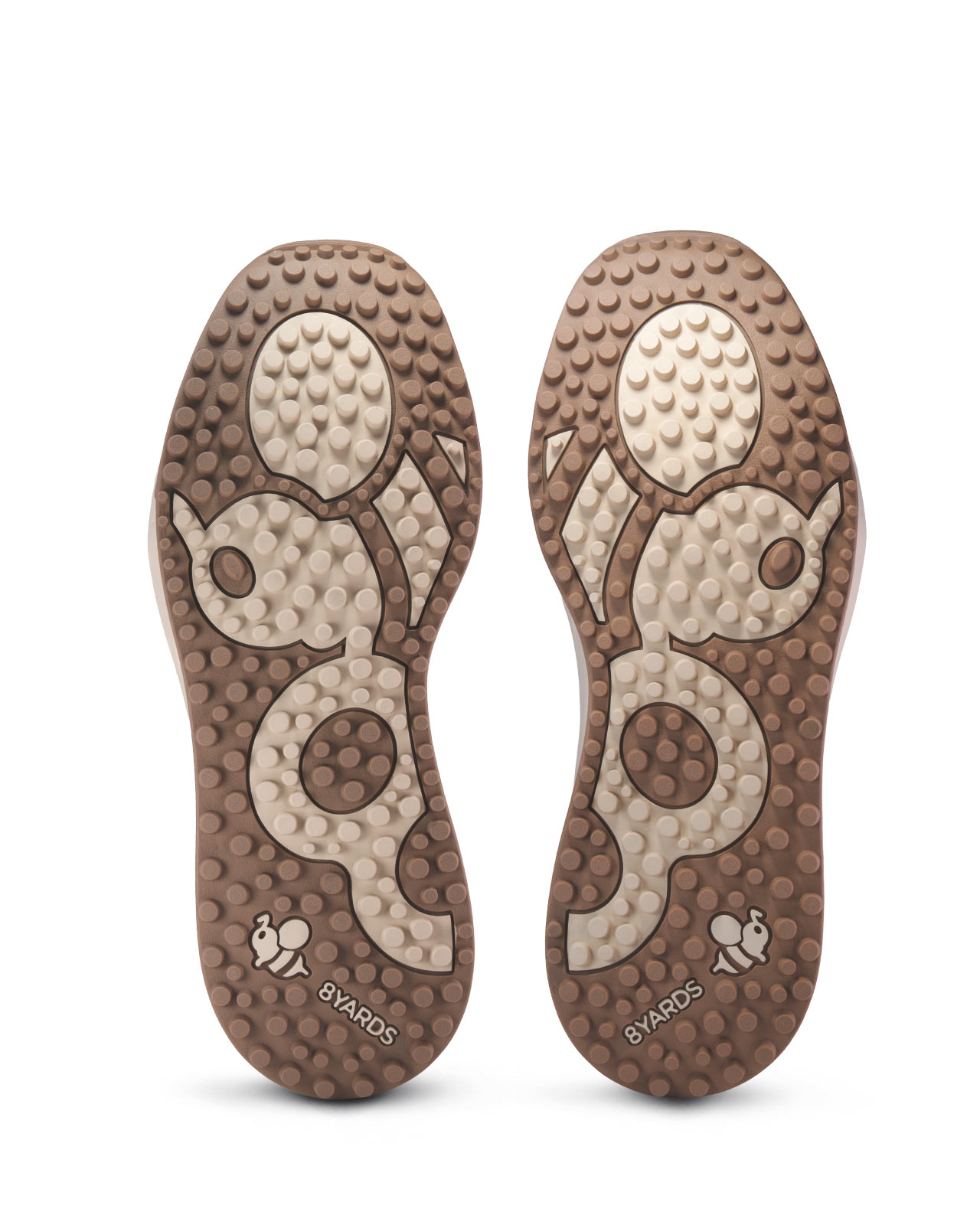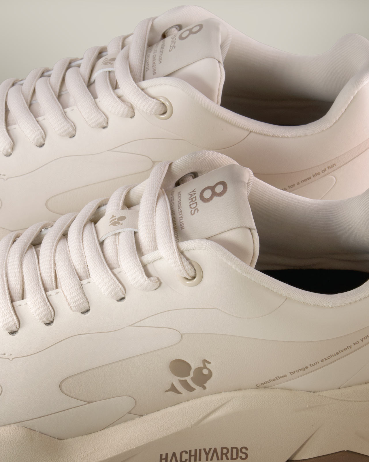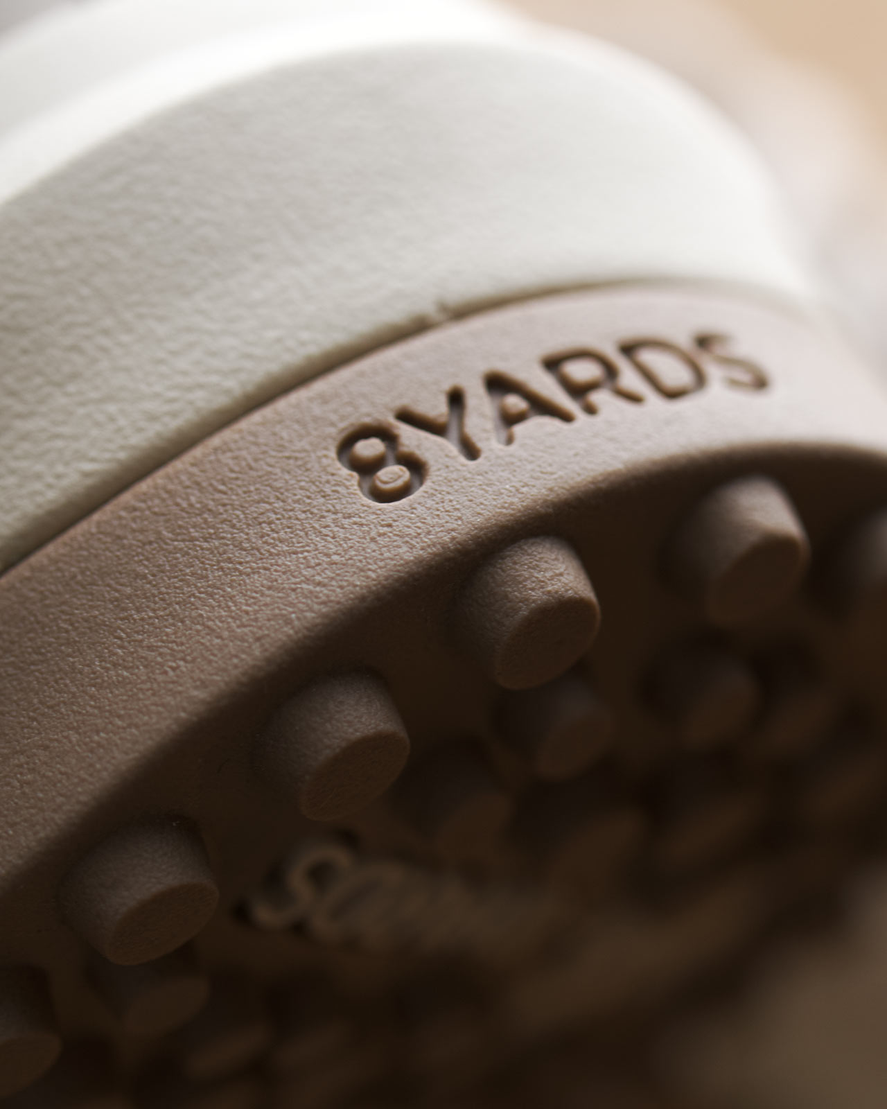 厚底で印象的なヒールデザイン。ソリッドなミッドソールに、大胆なCaddieBeeをあしらったアウトソール。全てが一体となったSKYPATHは、ゼロベースで作るからこそ出来たデザイン。随所に8YARDSらしさを散りばめ、シューズでしか実現できない「らしさ」を凝縮しました。