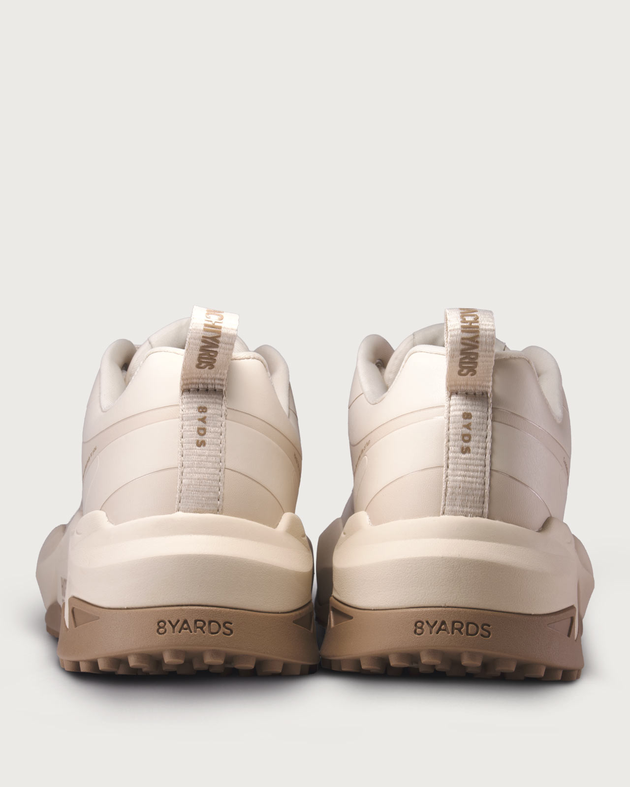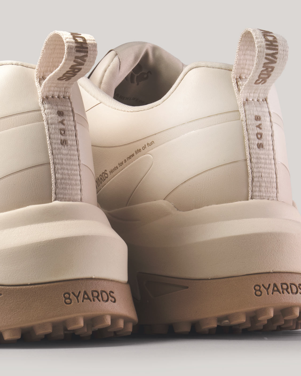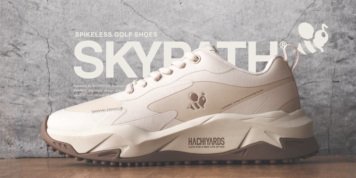 厚底で印象的なヒールデザイン。ソリッドなミッドソールに、大胆なCaddieBeeをあしらったアウトソール。全てが一体となったSKYPATHは、ゼロベースで作るからこそ出来たデザイン。随所に8YARDSらしさを散りばめ、シューズでしか実現できない「らしさ」を凝縮しました。