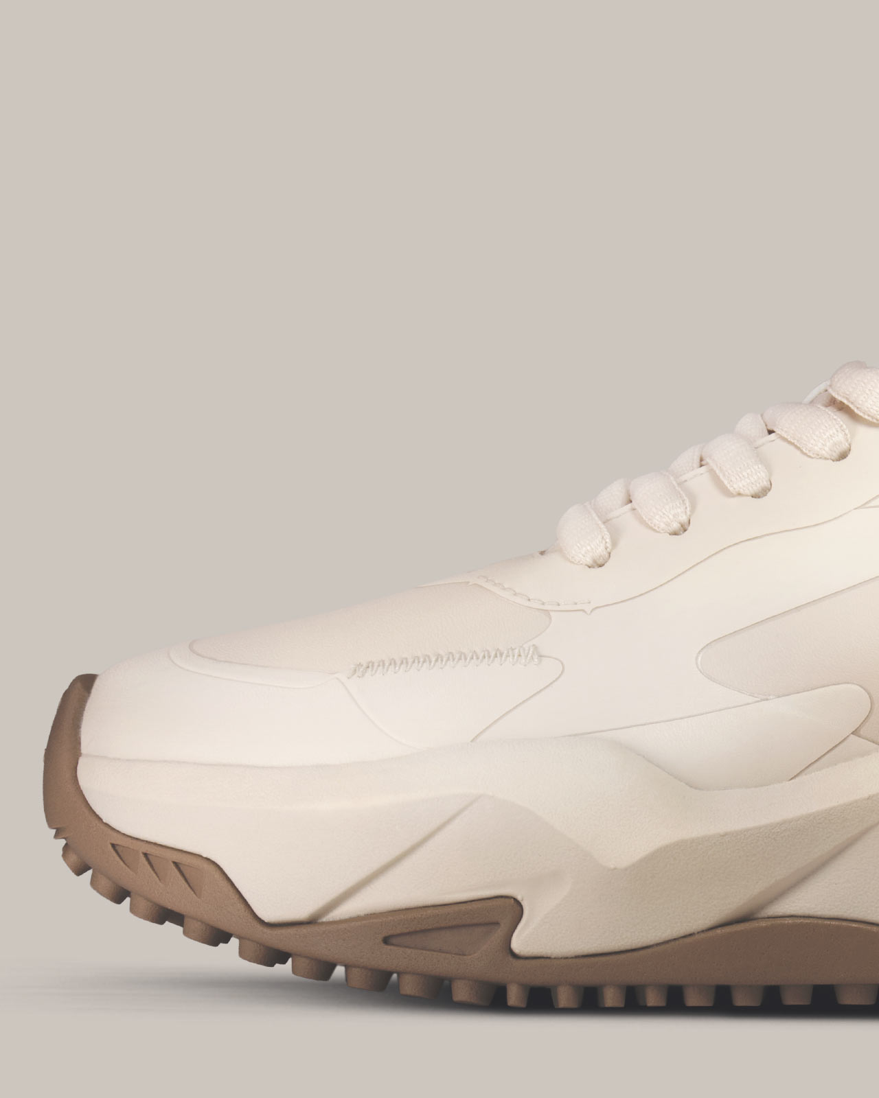 アッパーからミッドソール、インソールから靴紐、ステッチに至るまで、あらゆるパーツを同系色のベージュカラーで作り込んだ新色。