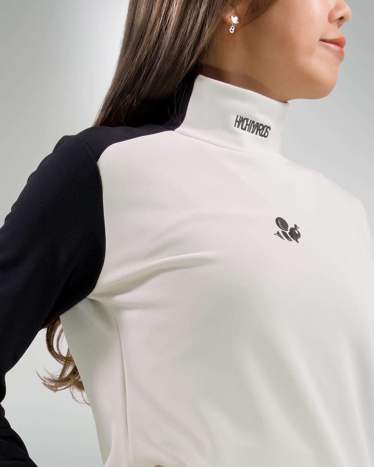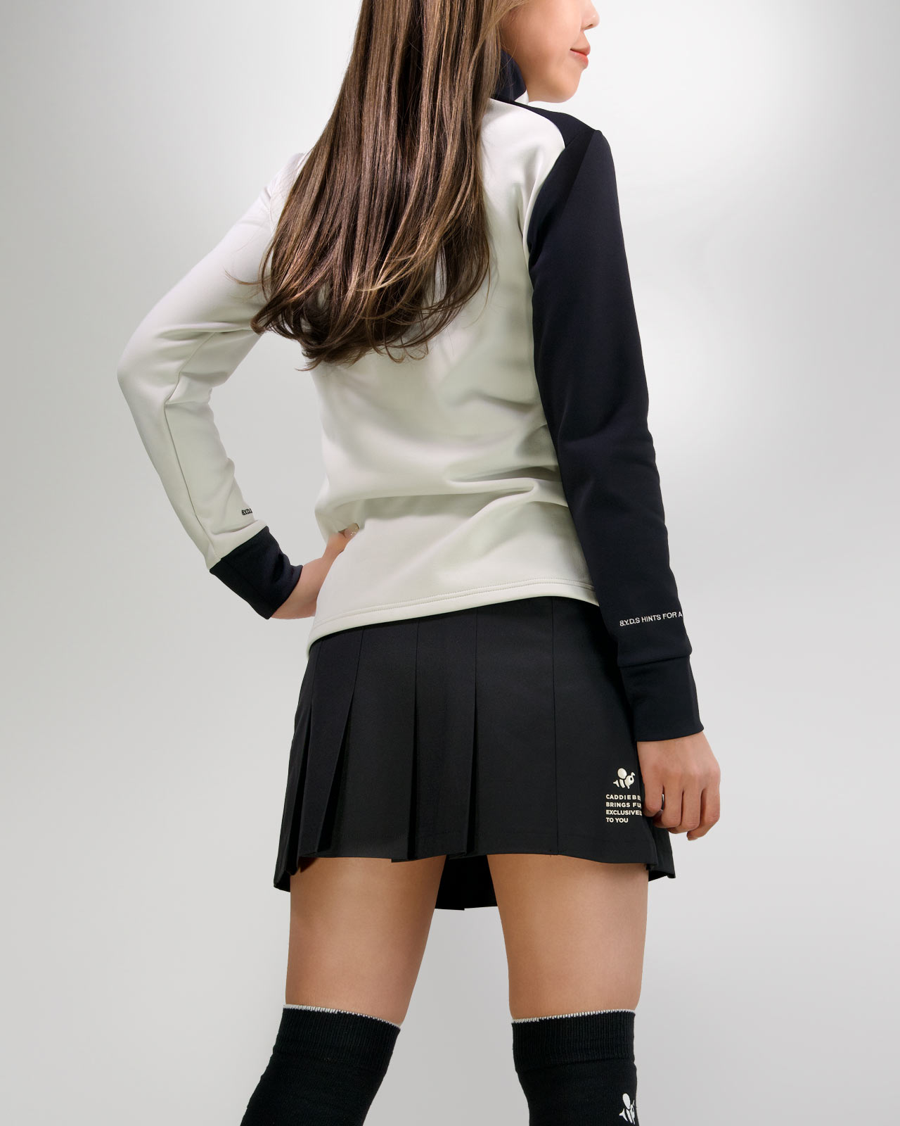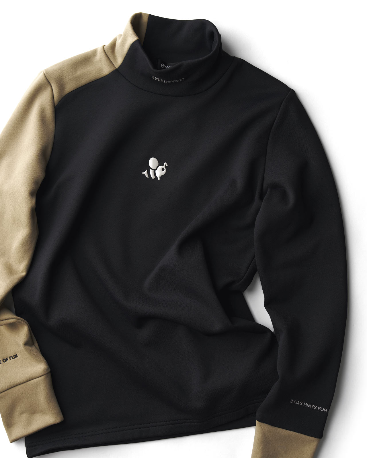 3Gは、襟〜右袖口まで続く配色が印象的なデザイン。本体カラーに合わせた立体パーツや刺繍を随所に配置し、配色に合わせた多数のモチーフを繊細な落とし込みで見せる、デザイン性の高さも特徴。フロント胸元の主役はCaddieBeeを立体パーツ。配色に合わせたカラーで落とし込みました。