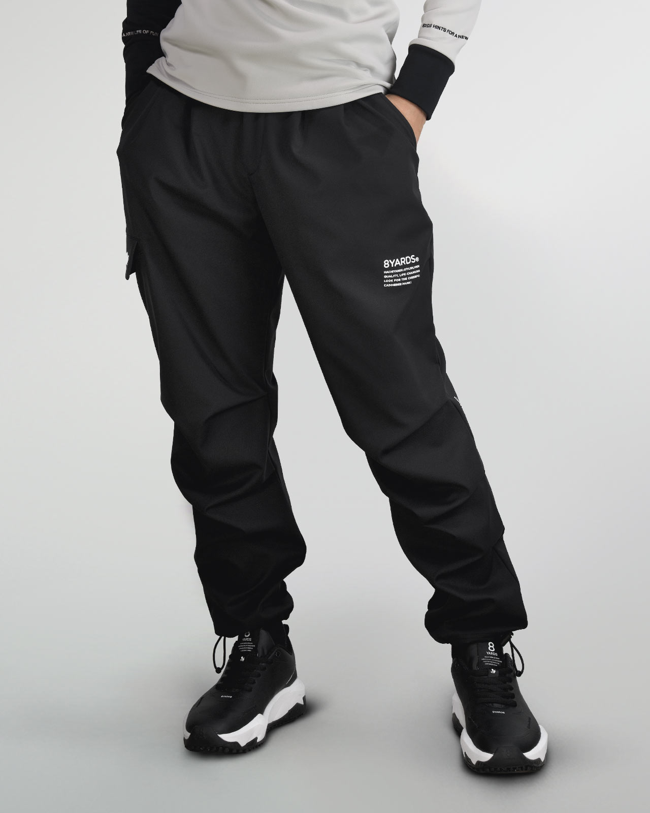 左側面は2Gにあったファスナーポケットを省き、左腿や、右脛〜左裾など、各種シリコンパーツを落とし込み、TAGLINEなど繊細なディテールでまとめました。シワになりにくく扱いやすさも兼ね備えた超多機能素材は、ツイルの表面で、程よいハリ感が独特のシルエットを形成。窮屈にならないボリュームのあるフィット感で、ストレスフリーな抜群の着心地を実現しています。