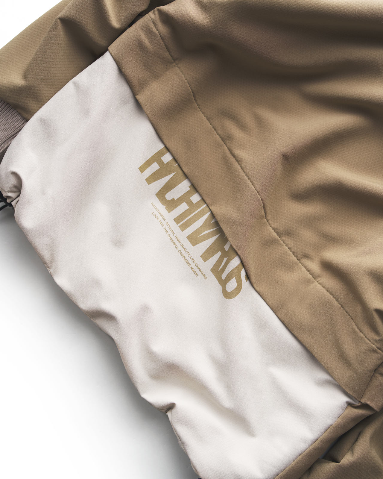 表面はフッ素化合物を一切使用しないC0撥水加工。軽量、2wayストレッチ、透湿性、ウォッシャブル、防シワ性を備え、しなやかで扱いやすさ抜群。裏地にはThermotron®の蓄熱保温素材を採用し、襟とボディ部分に中綿を挟み込み徹底的に保温性を高めました。