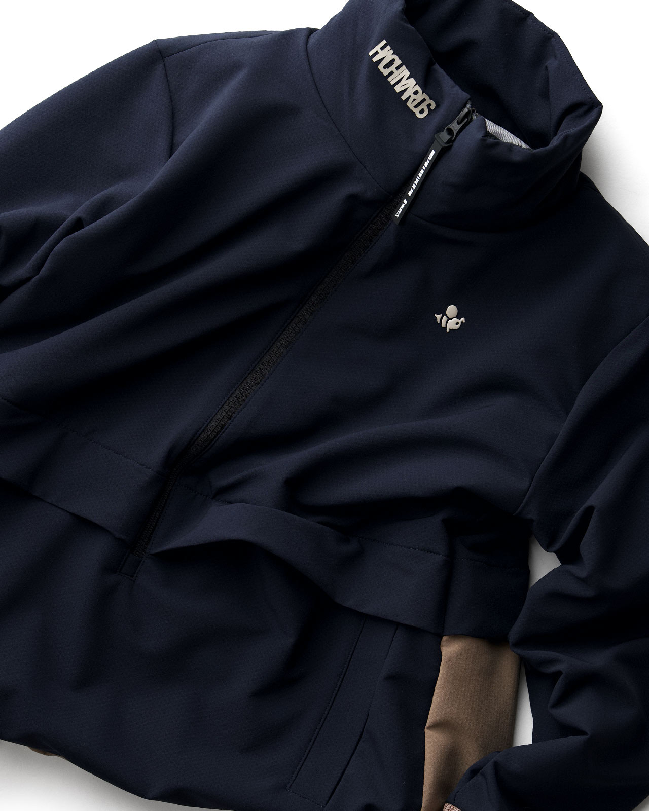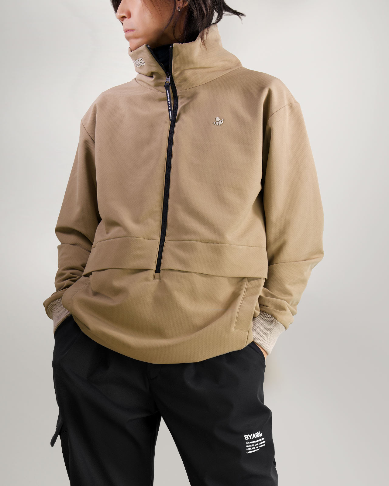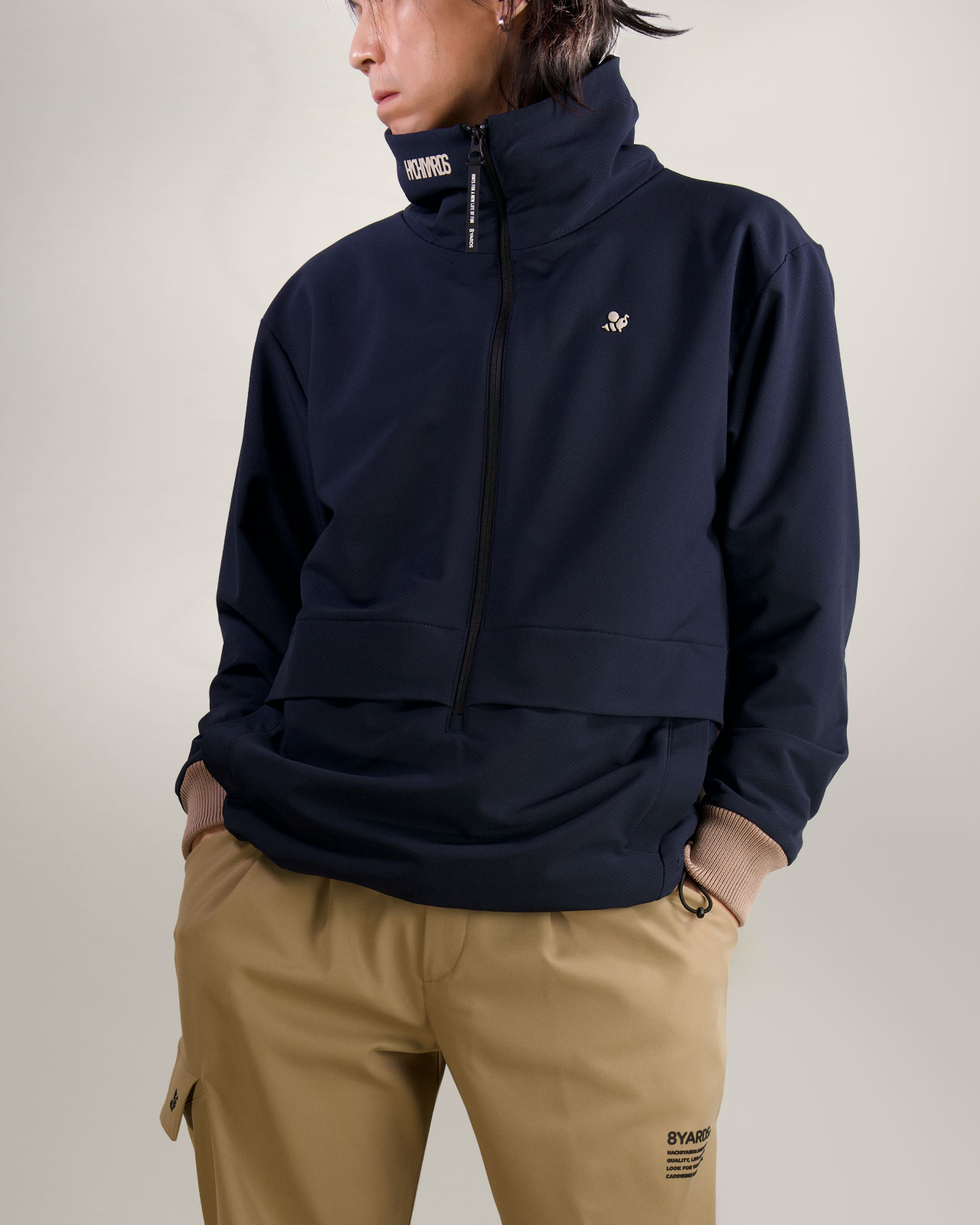 8YARDSの解釈でゴルフウェアに昇華させた、フードレス仕様のアノラック。