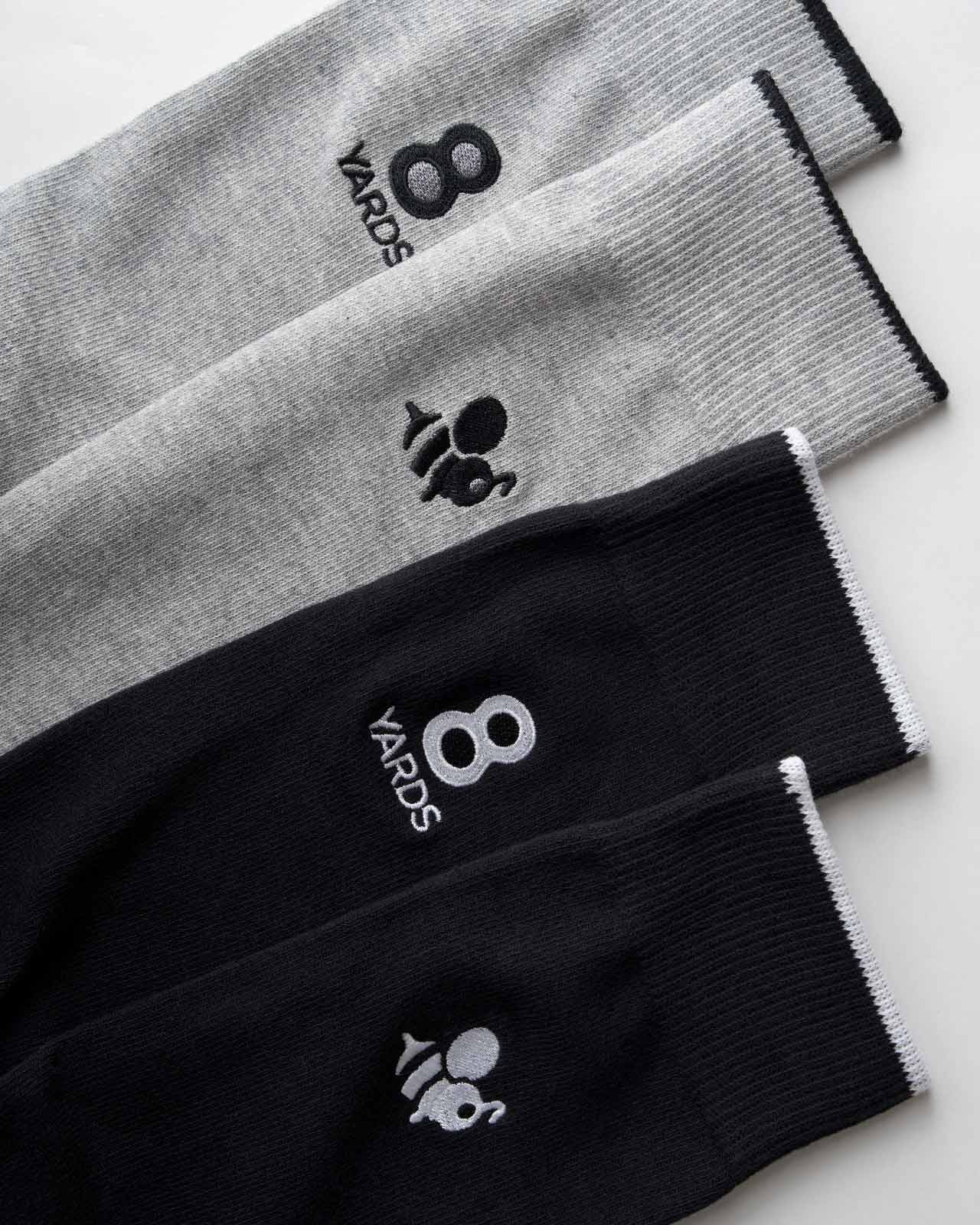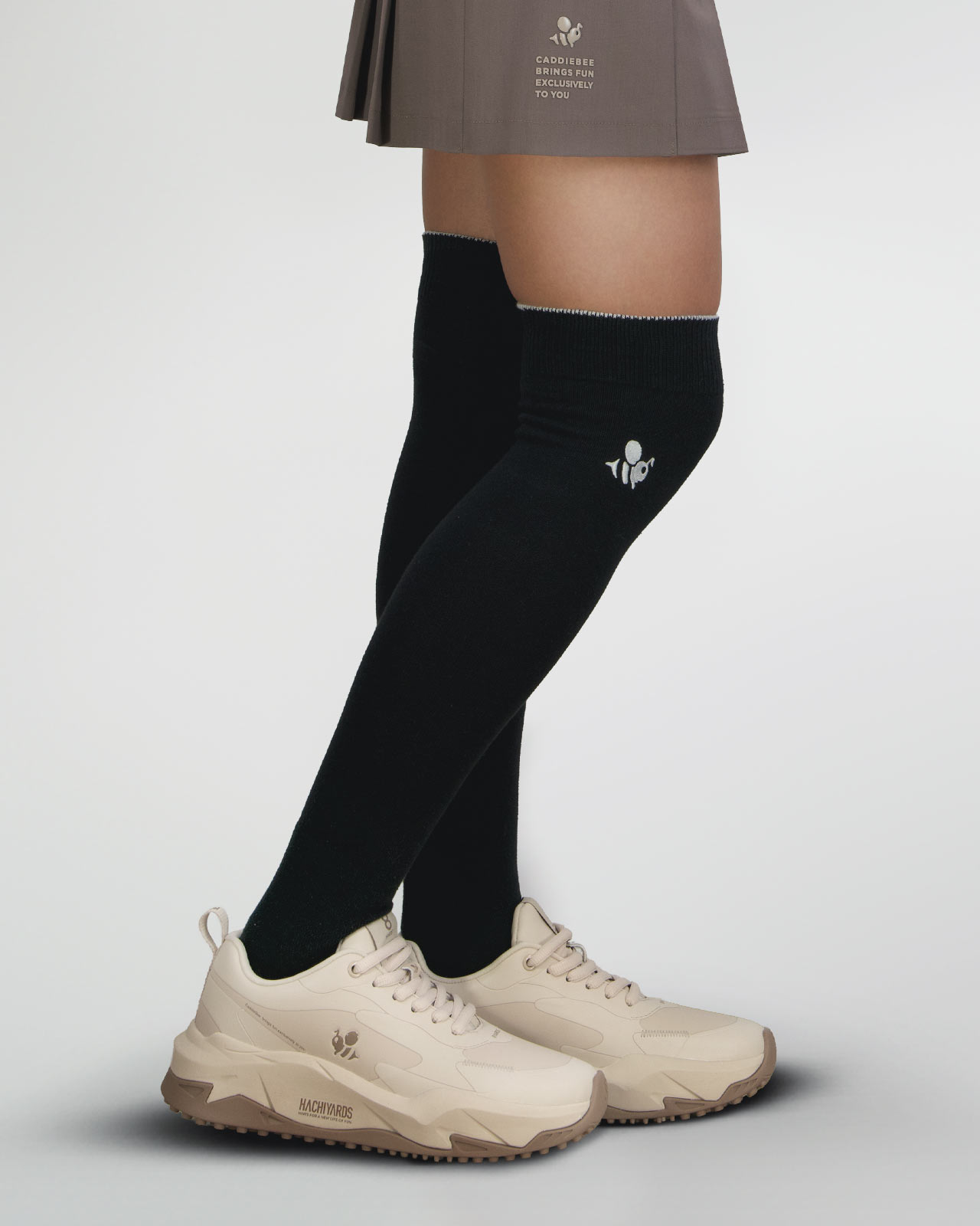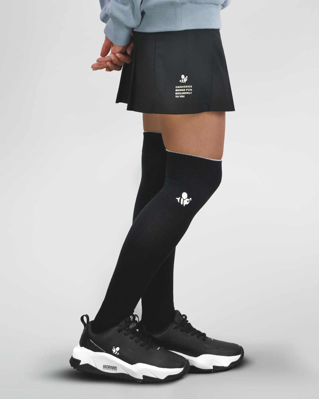 8YARDS初のニーハイソックス。左右異なる刺繍を配置したシンプルデザインで、左は8YARDSロゴ、右はソックスとしては初のCaddieBee。共にオフィシャルロゴで落とし込みました。
