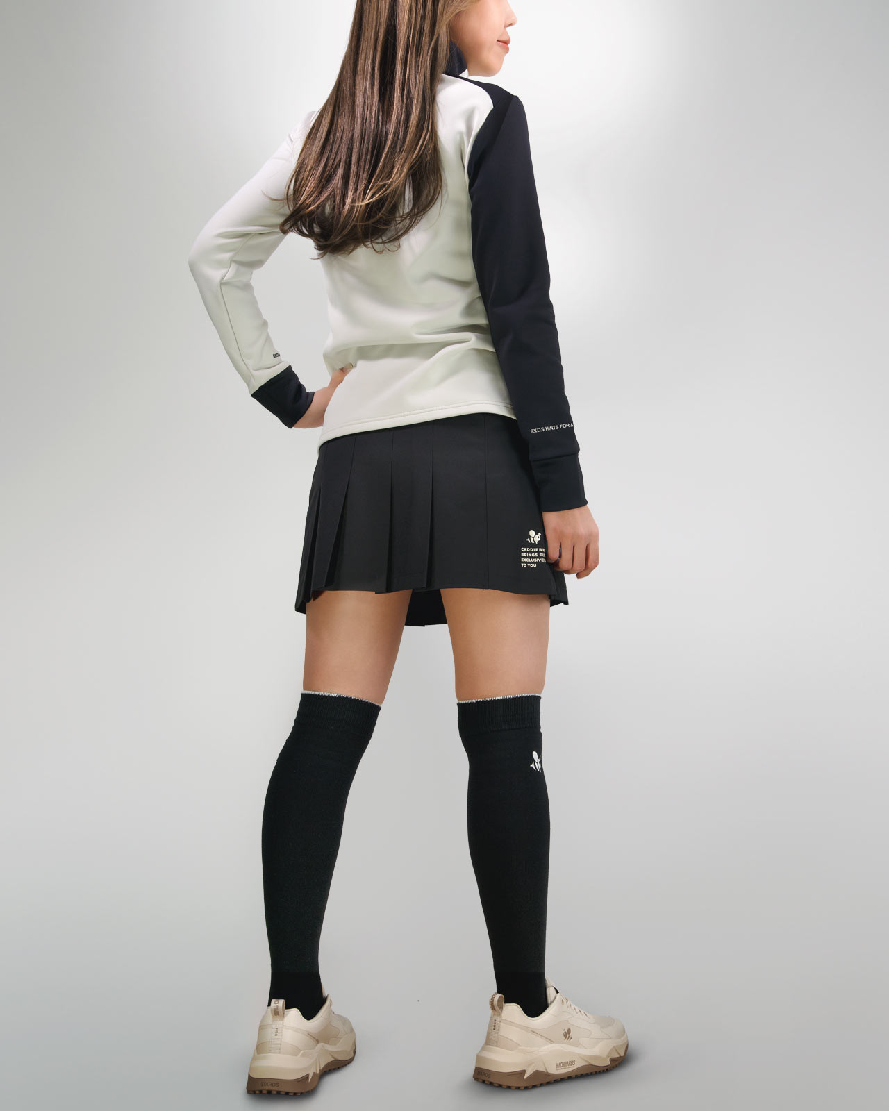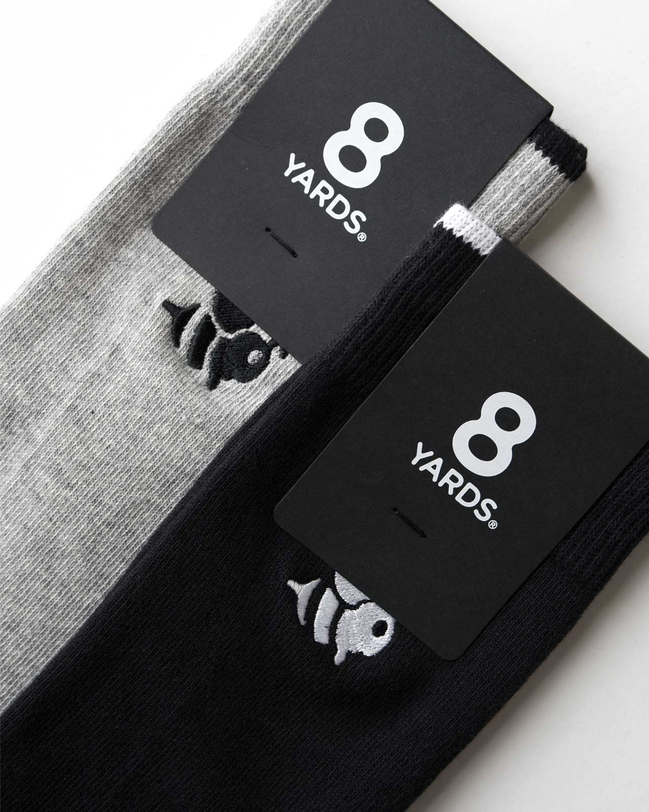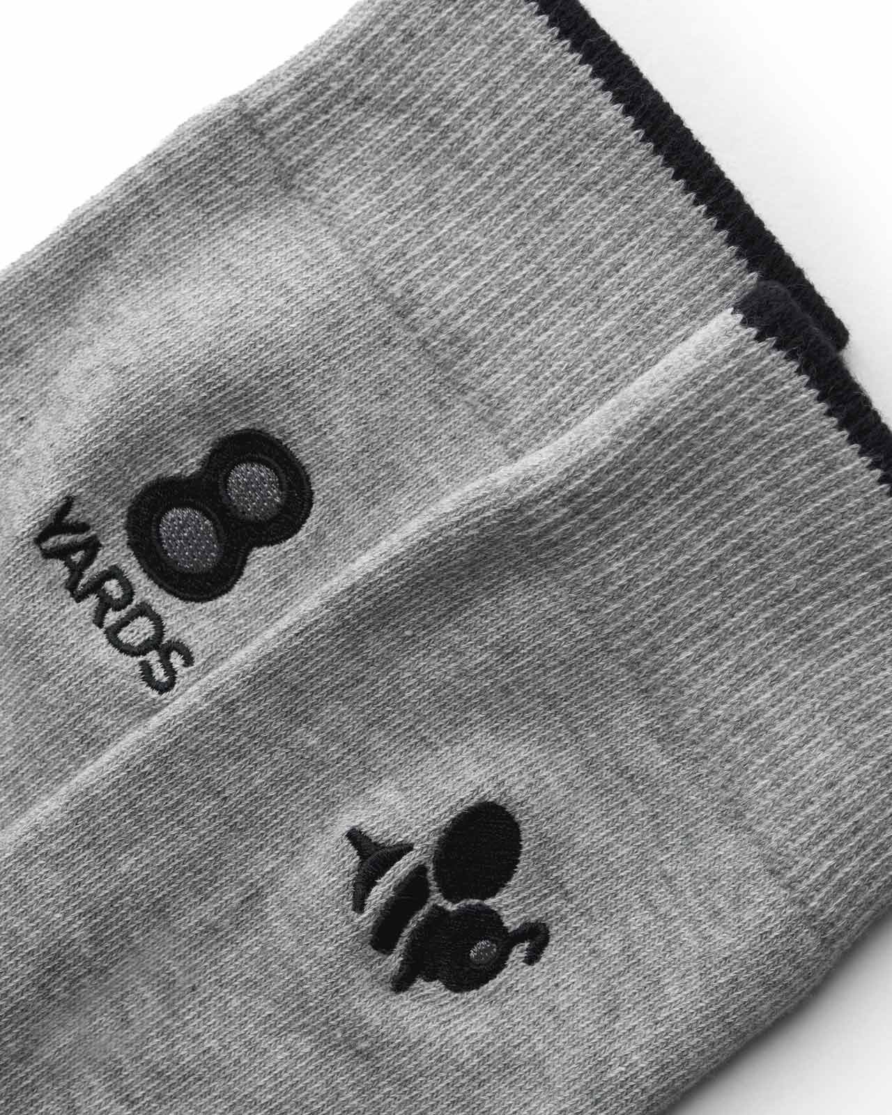8YARDS初のニーハイソックス。左右異なる刺繍を配置したシンプルデザインで、左は8YARDSロゴ、右はソックスとしては初のCaddieBee。共にオフィシャルロゴで落とし込みました。