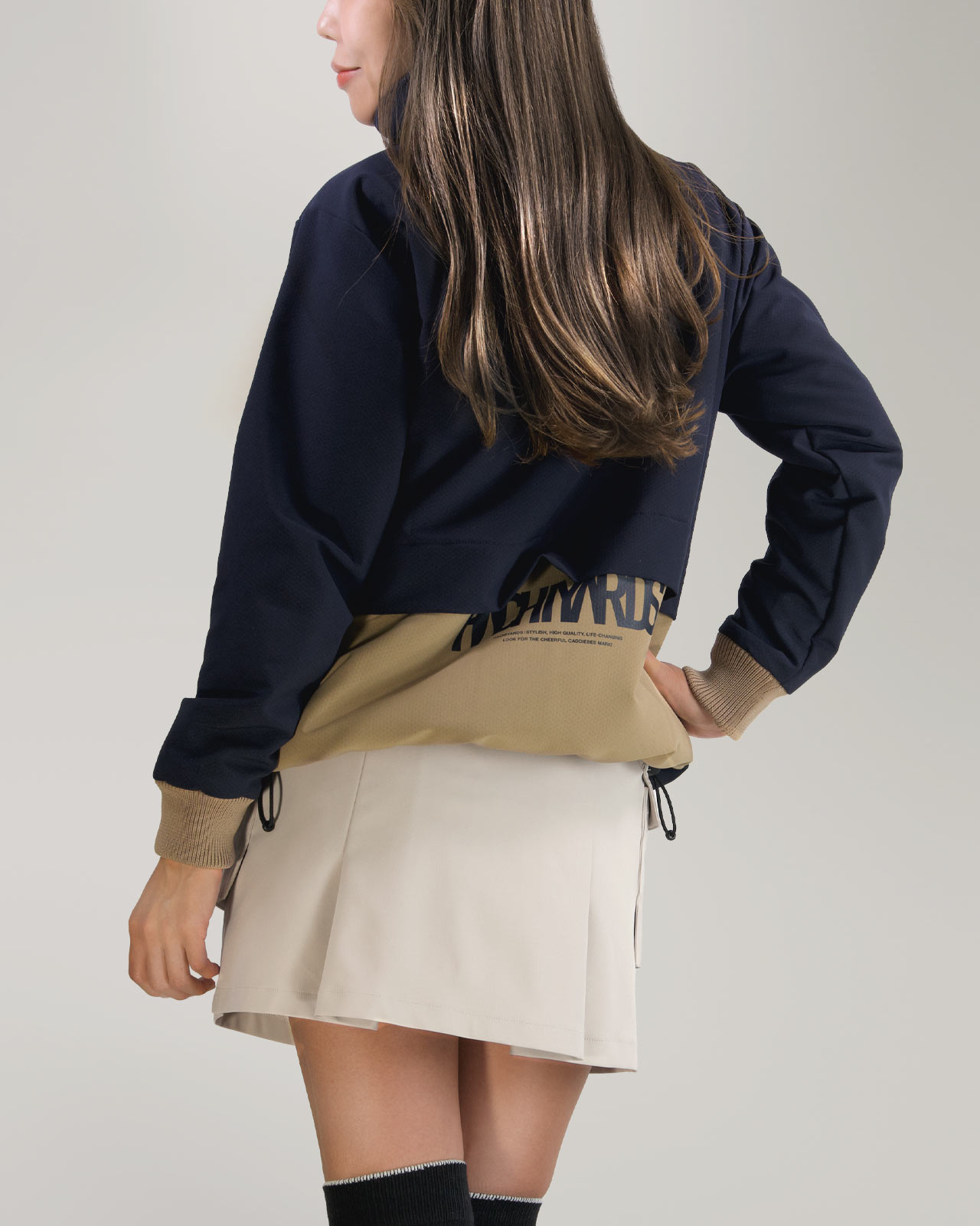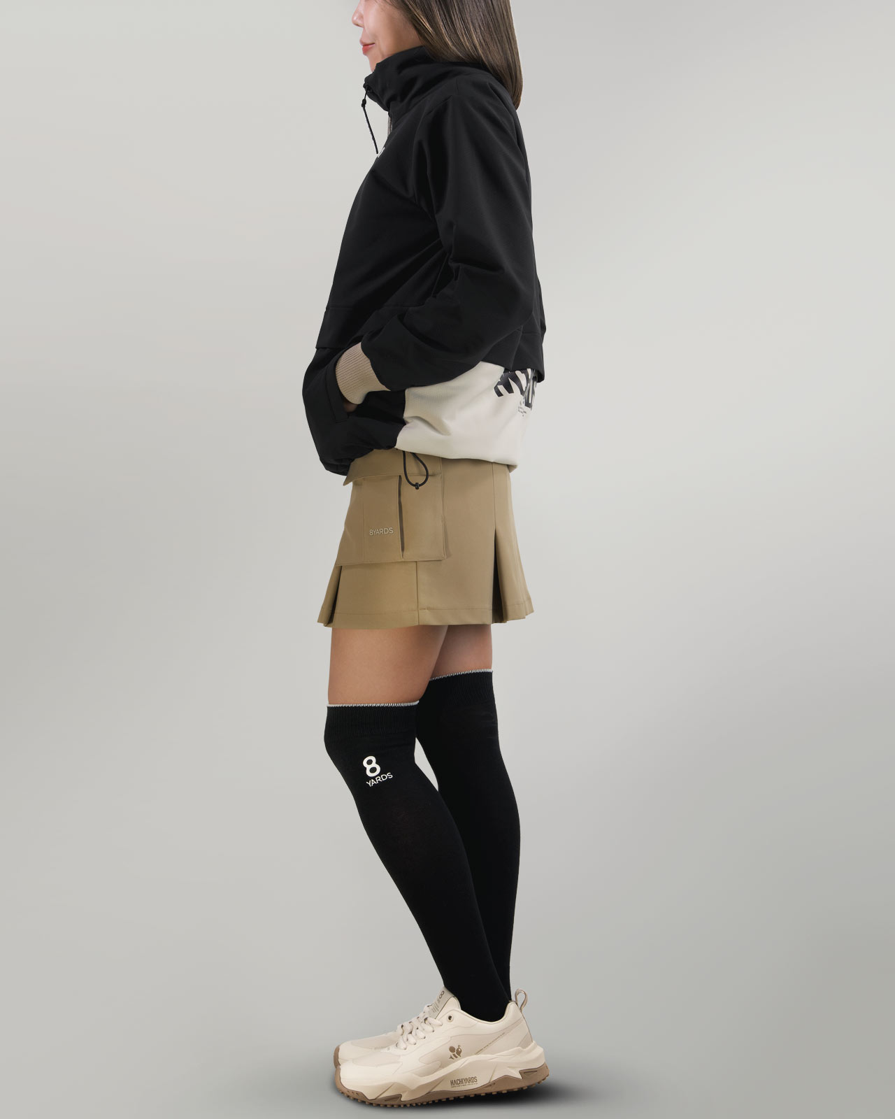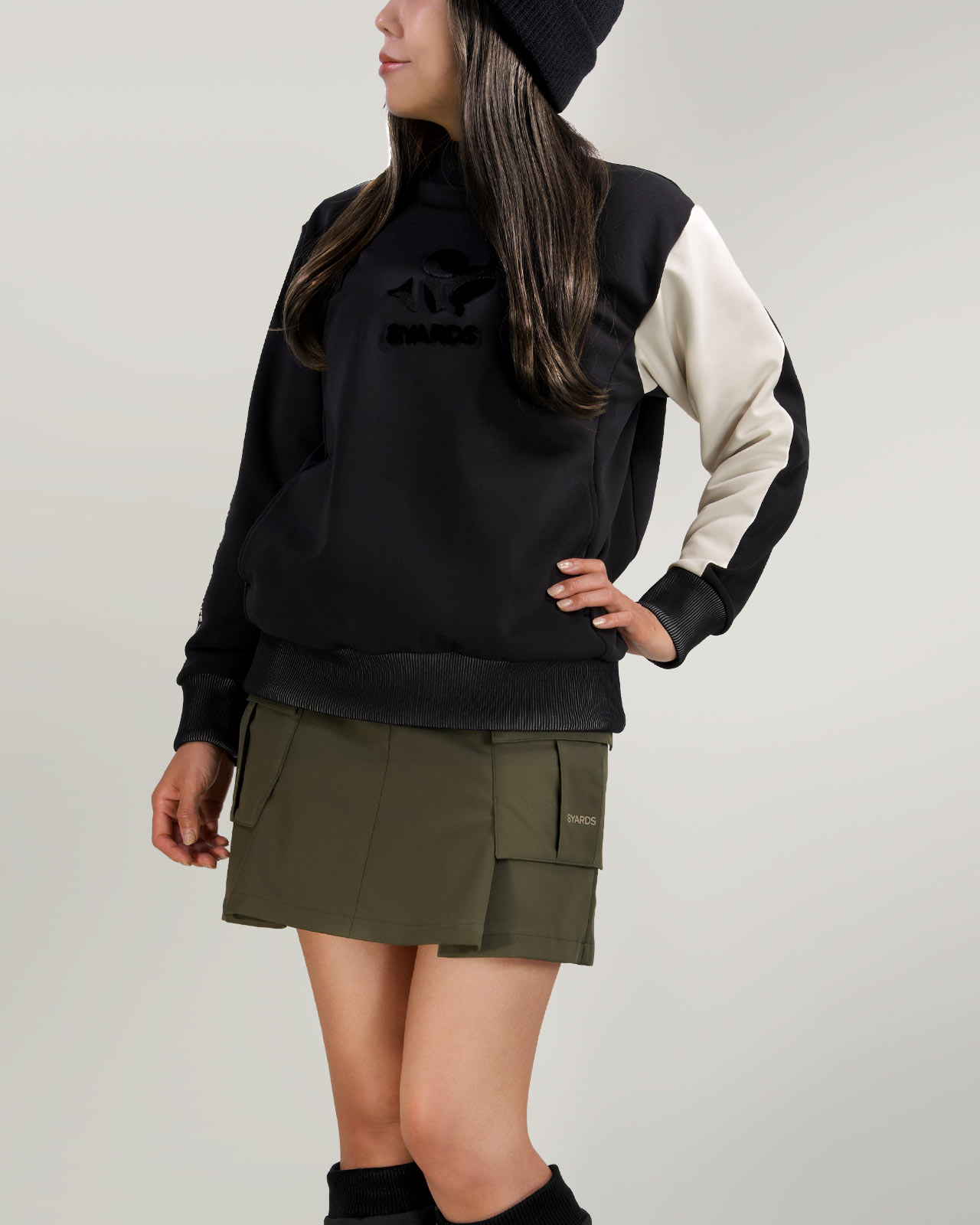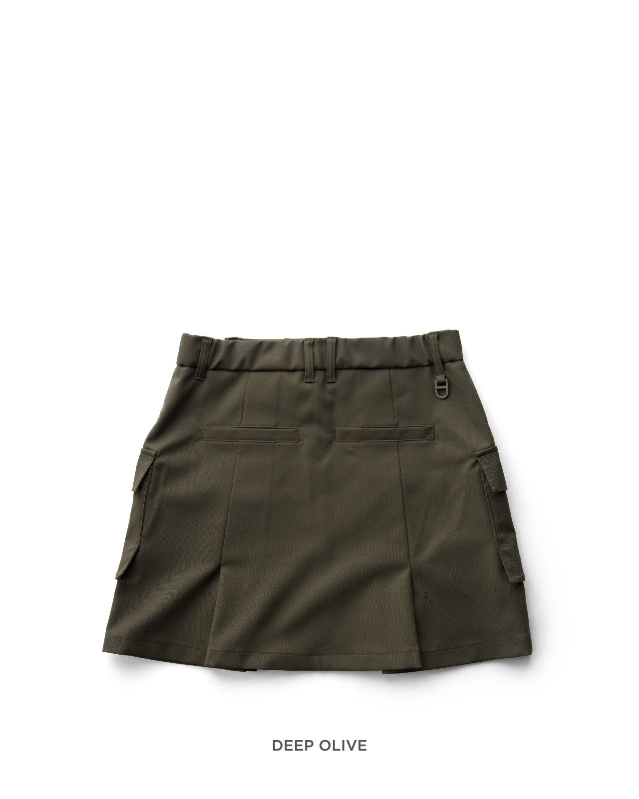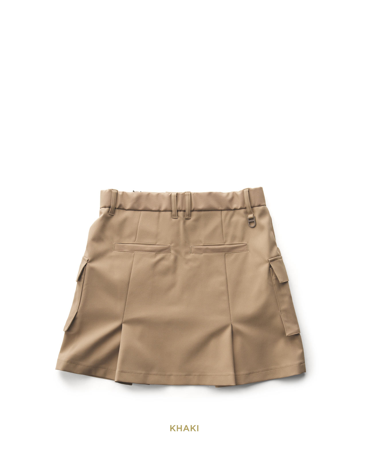 前後にはプリーツを効果的に入れ、 程よい広がりと奥行きのあるディテールを付加。多機能な素材とデザインが程よく融合した、ミリタリーなギア感を想起させるカーゴスカートです。