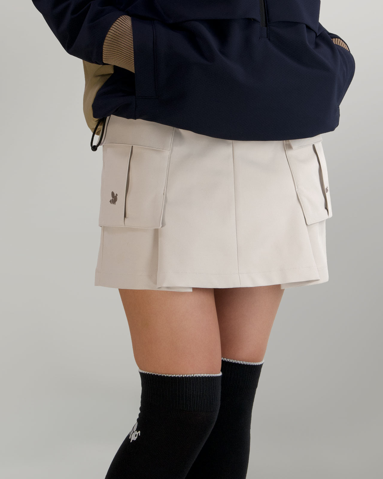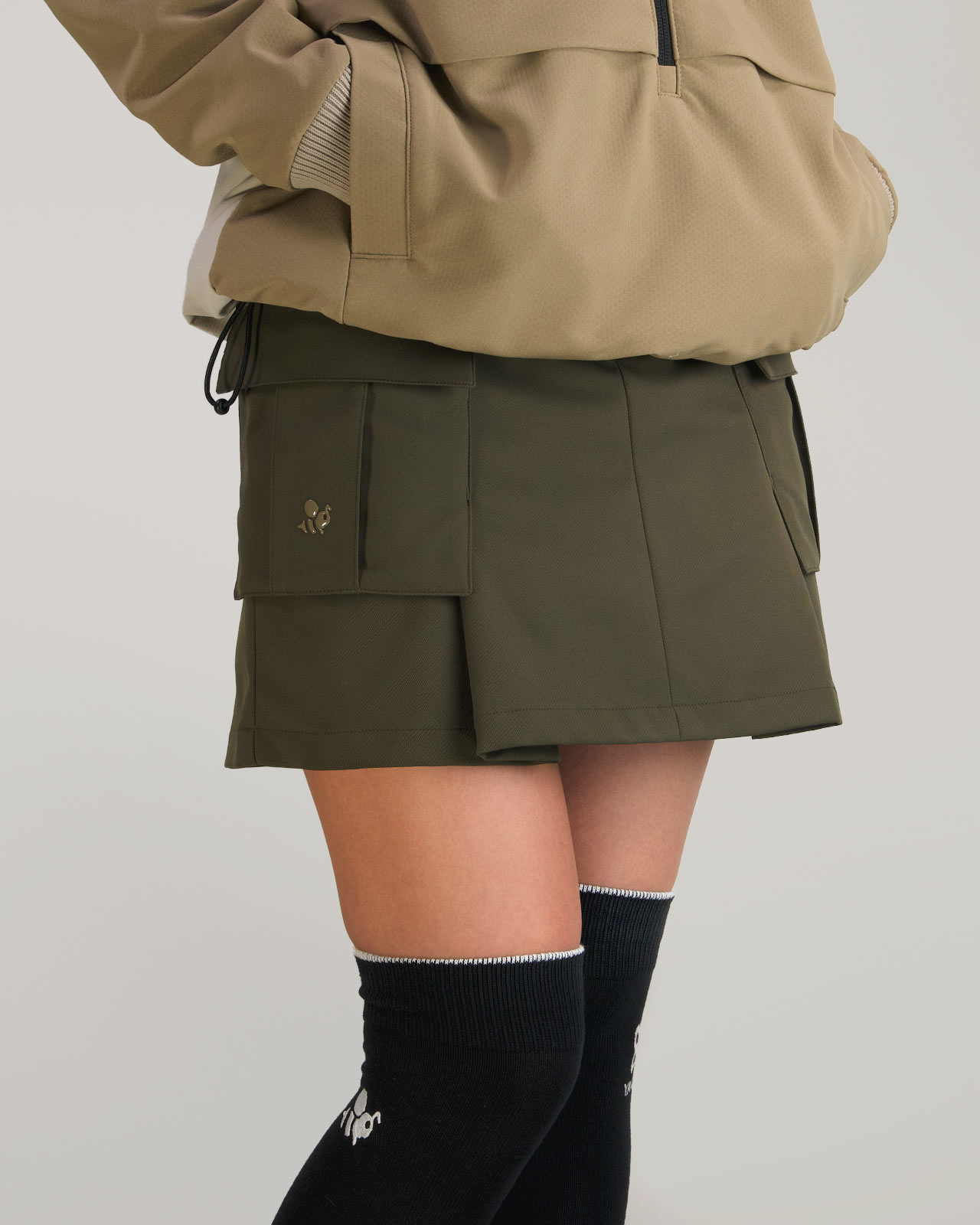 ミリタリーなギア感を想起させるカーゴスカート、