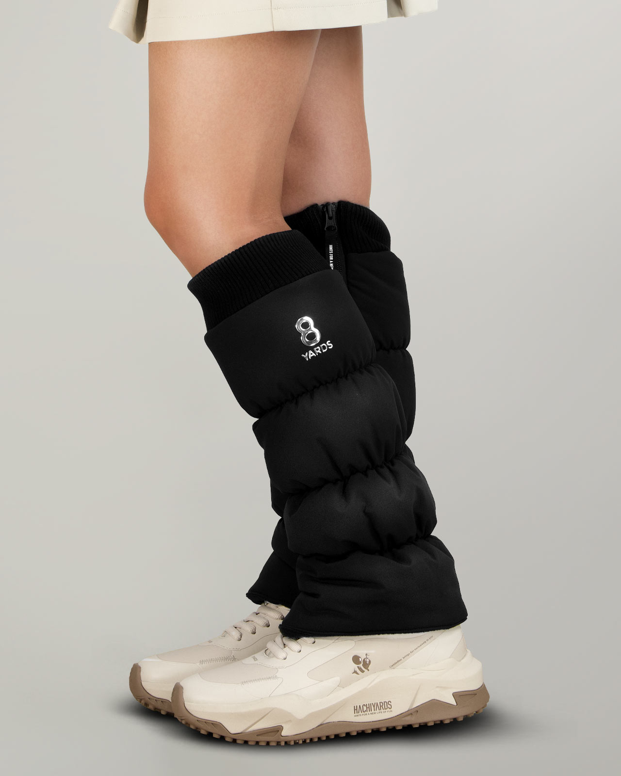 着脱に便利なファスナー仕様の中綿レッグウォーマー。