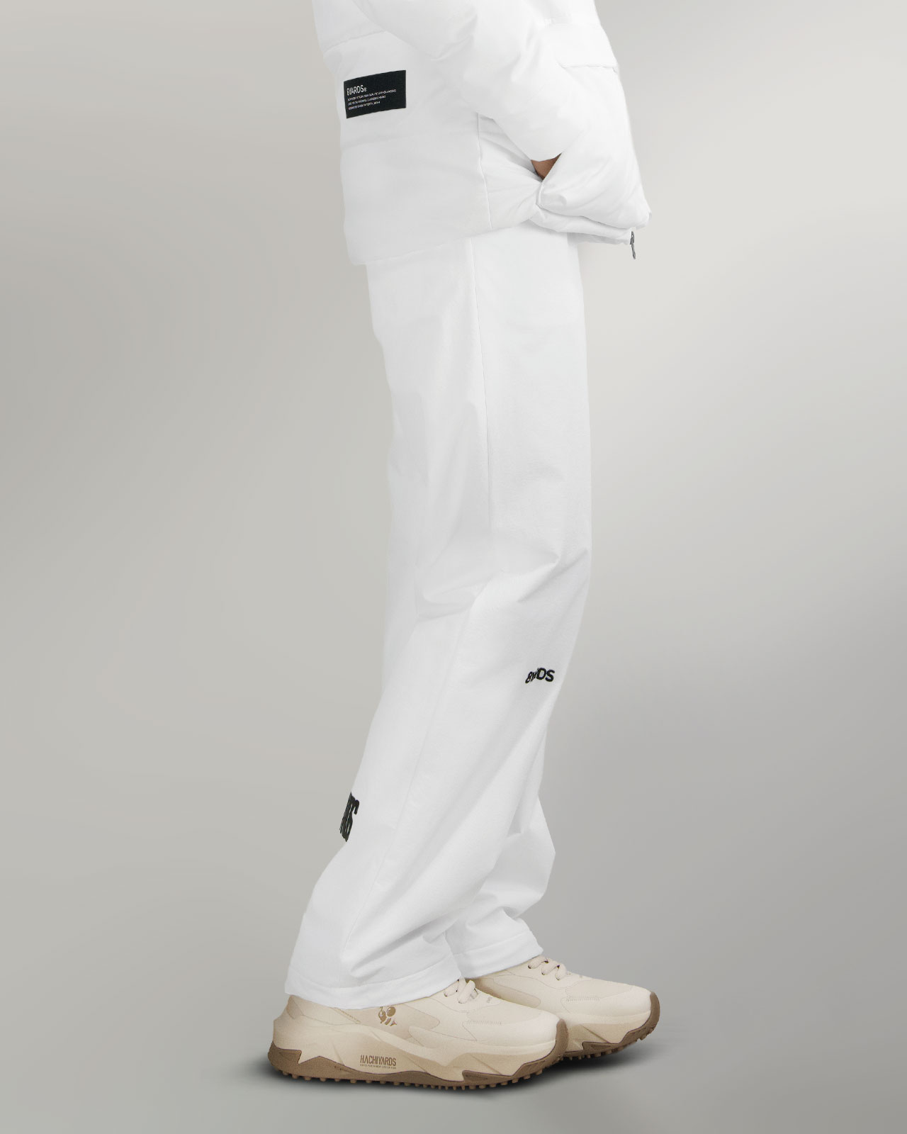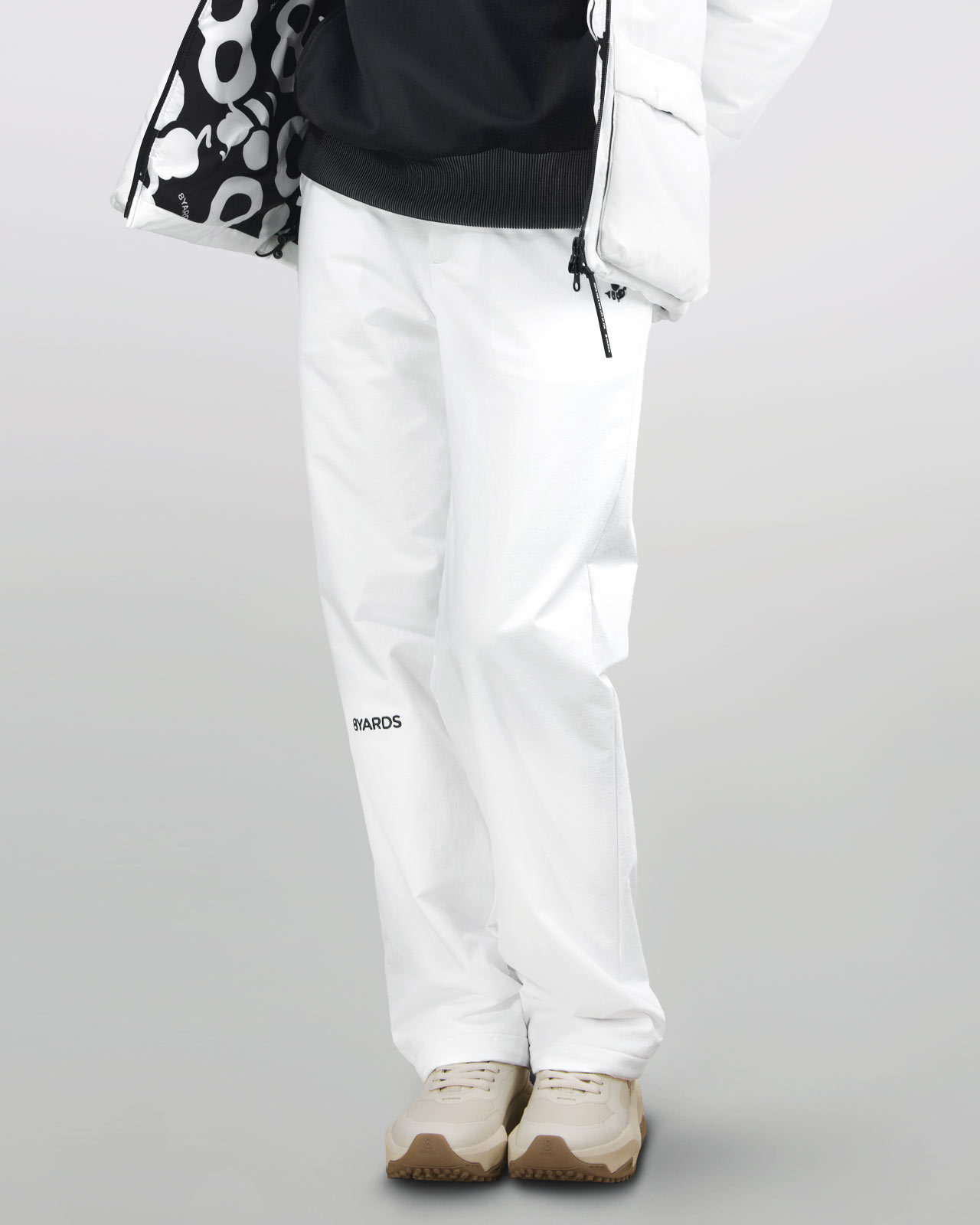 腿から裾にかけてストレートに落ちる、ワイドストレートのシルエットが特徴で、ボリューム感のあるトップスやアウターとの相性は抜群。デザインアクセントに、右後ろにConnected HACHIYARDSロゴを厚みのあるシリコンパーツでオン。前にワンポイントで8YARDSロゴを刺繍で配置しました。