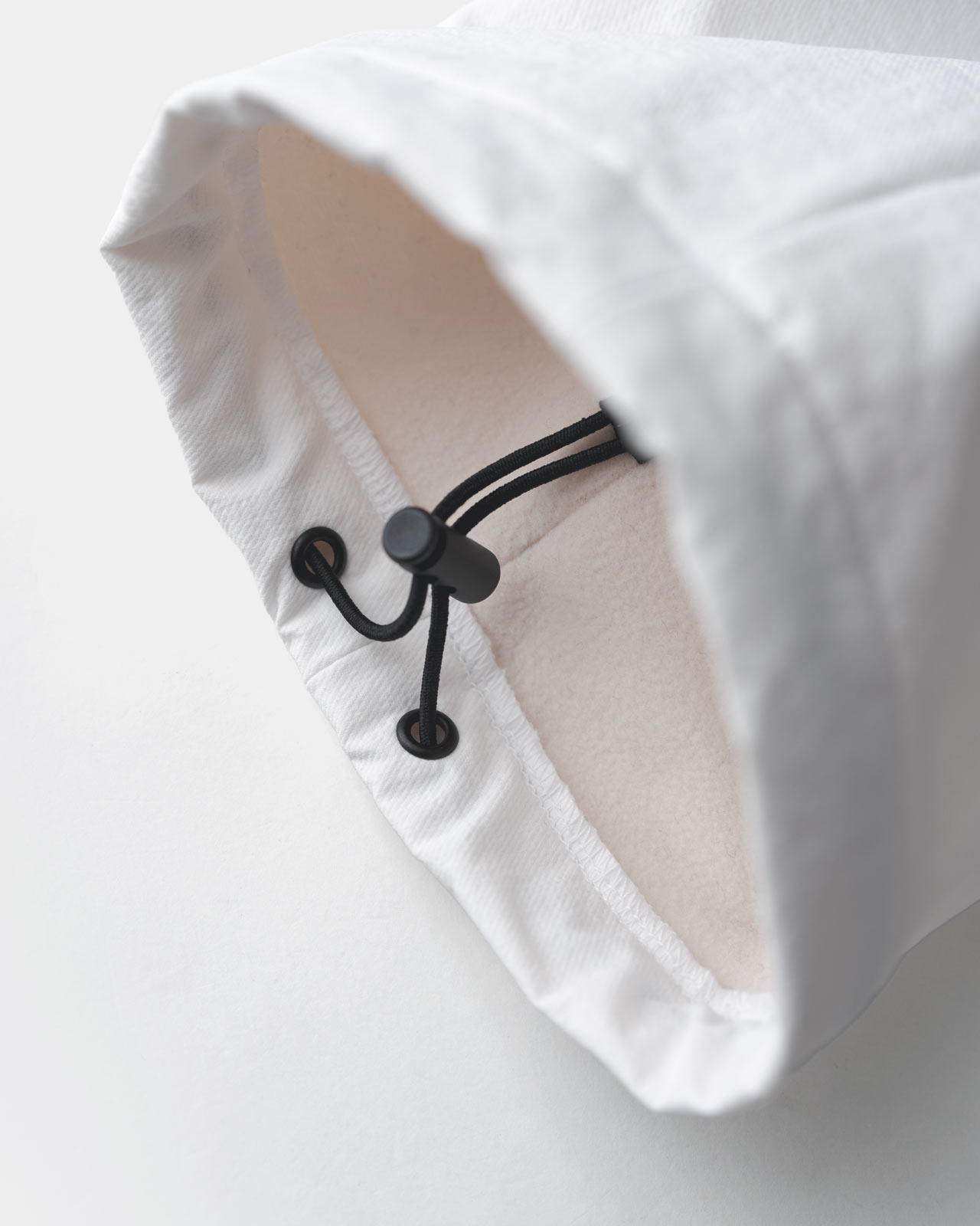 外側は耐久性の高いCORDURA® nylonを初採用。裏地に保温性のあるマイクロフリースで、異素材を組み合わせました。暖かくやわらかいフリースに、ハリ感のある耐久素材を組み合わせることで、独特のシルエットを形成し保温性も高めました。高いストレッチ性に、ウエストゴム仕様でフィット感も抜群。ストレスフリーの着心地です。