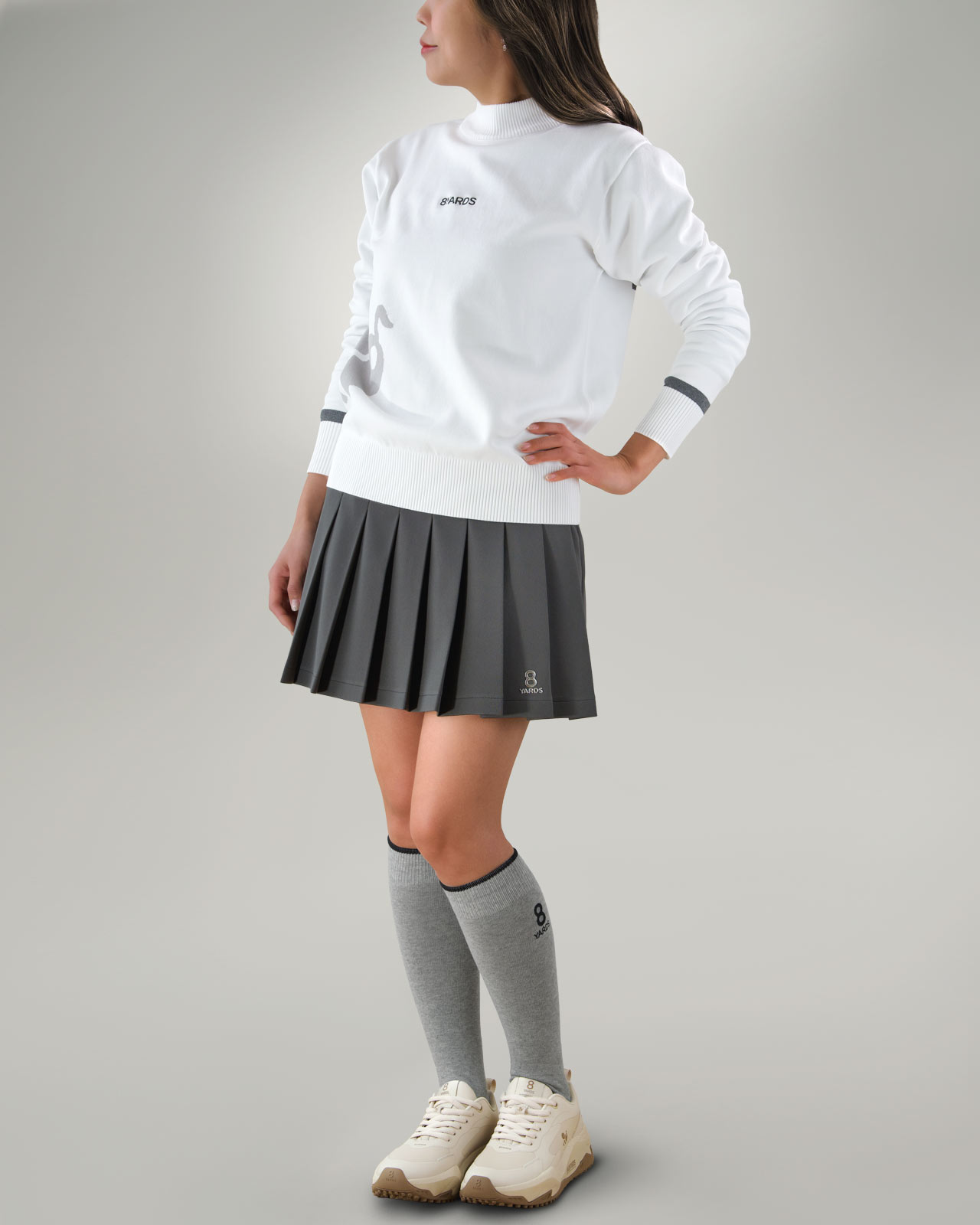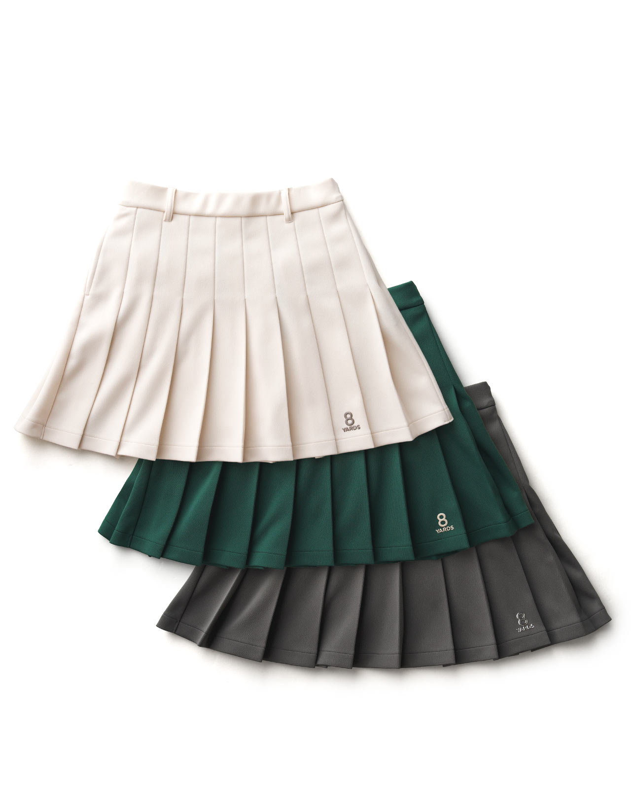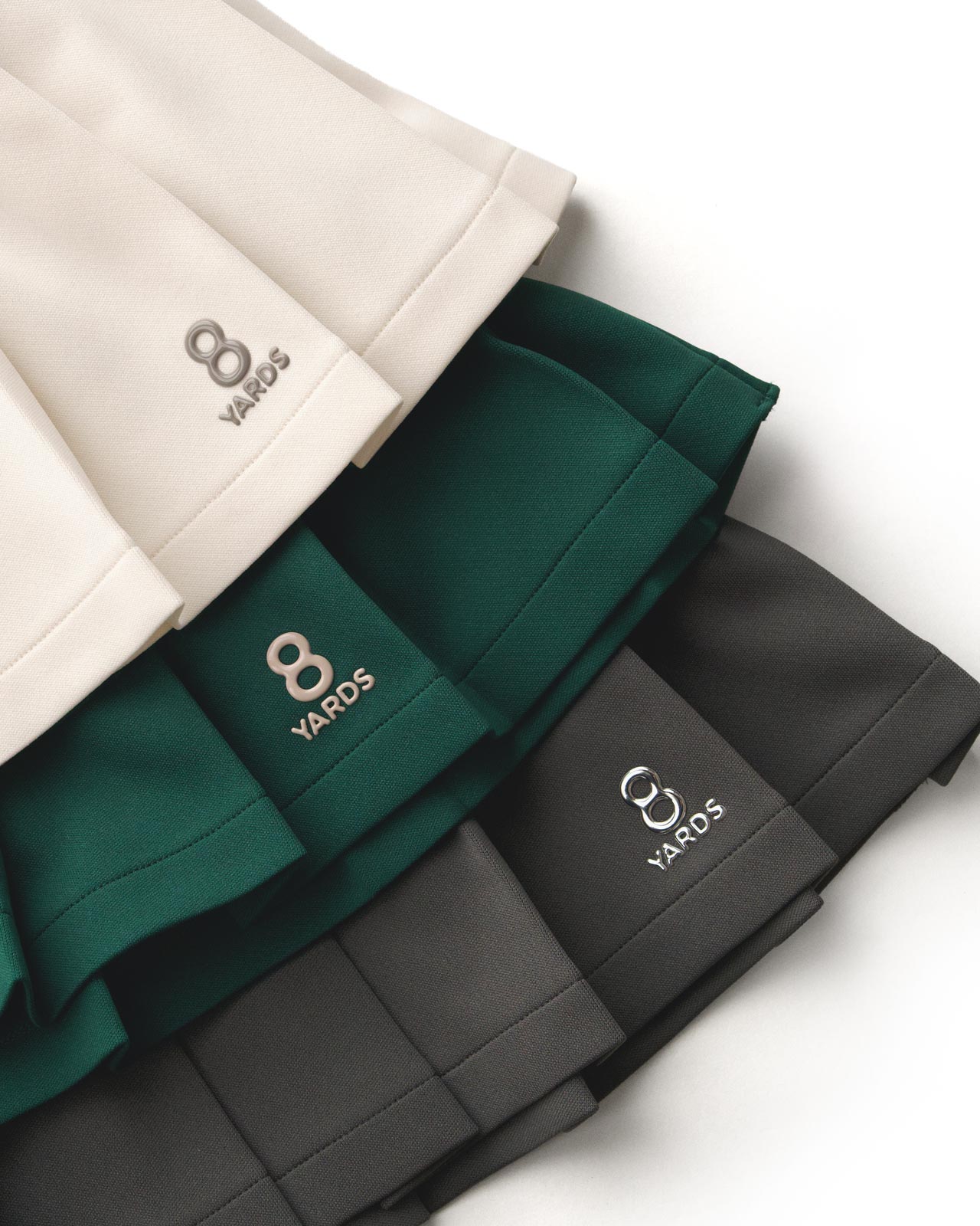 左裾に、8YARDSロゴ、右後ろポケットにはCaddieBeeの立体パーツをワンポイントで控えめに配置。主役はプリーツとなるシンプルデザインで、合わせやすさは抜群。