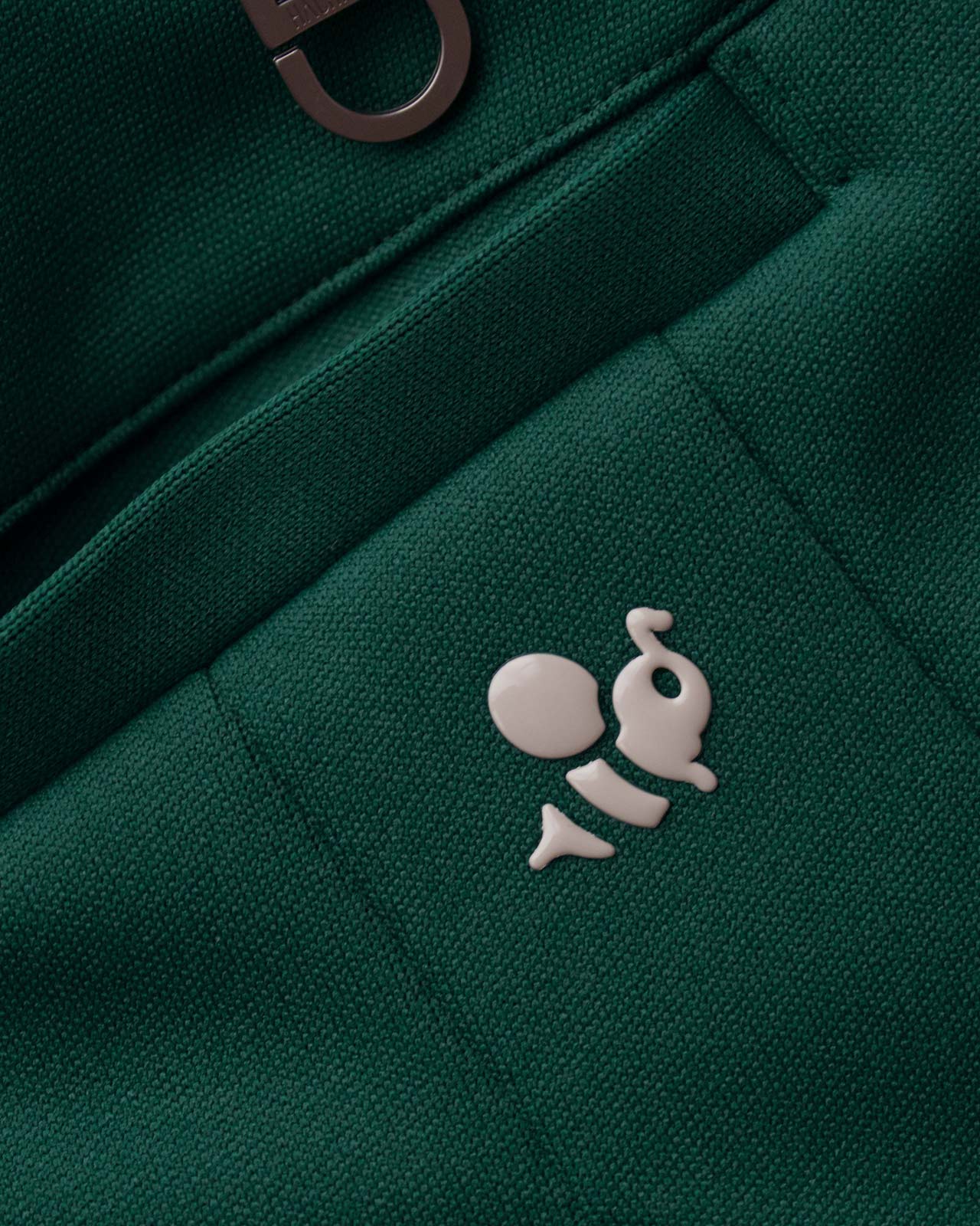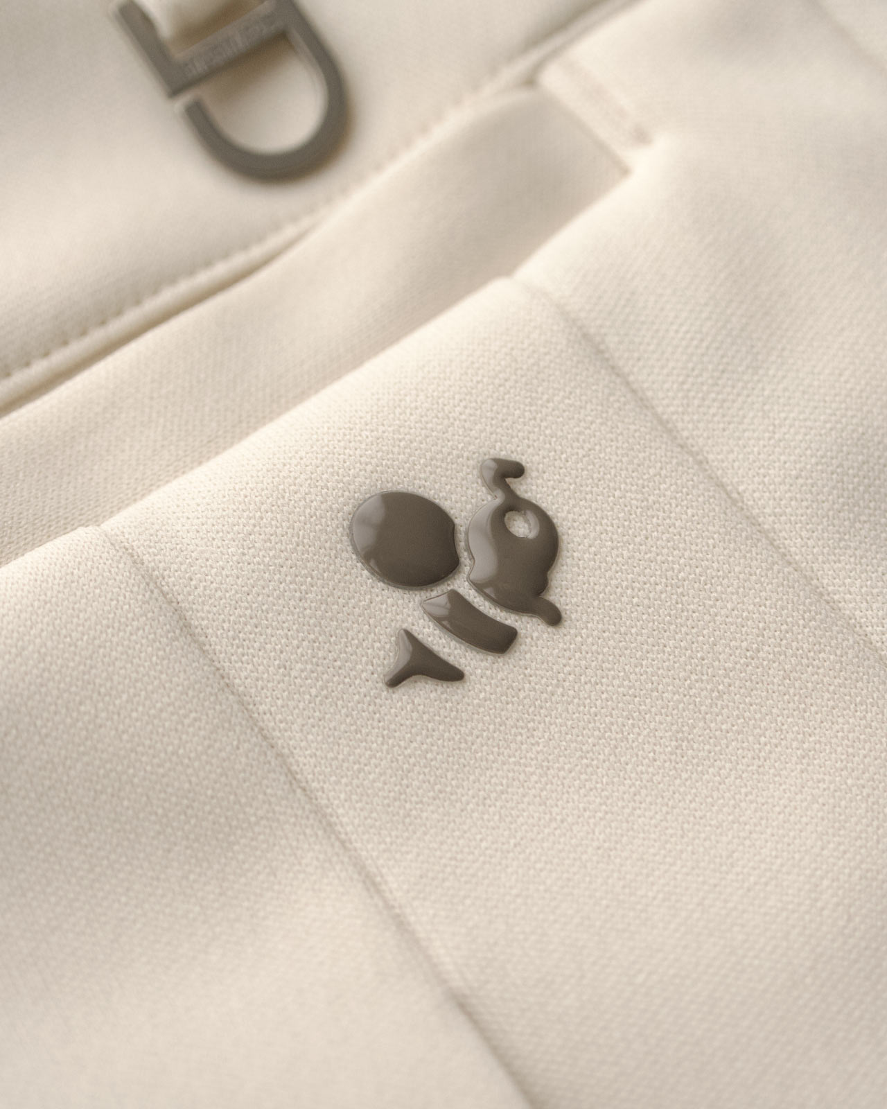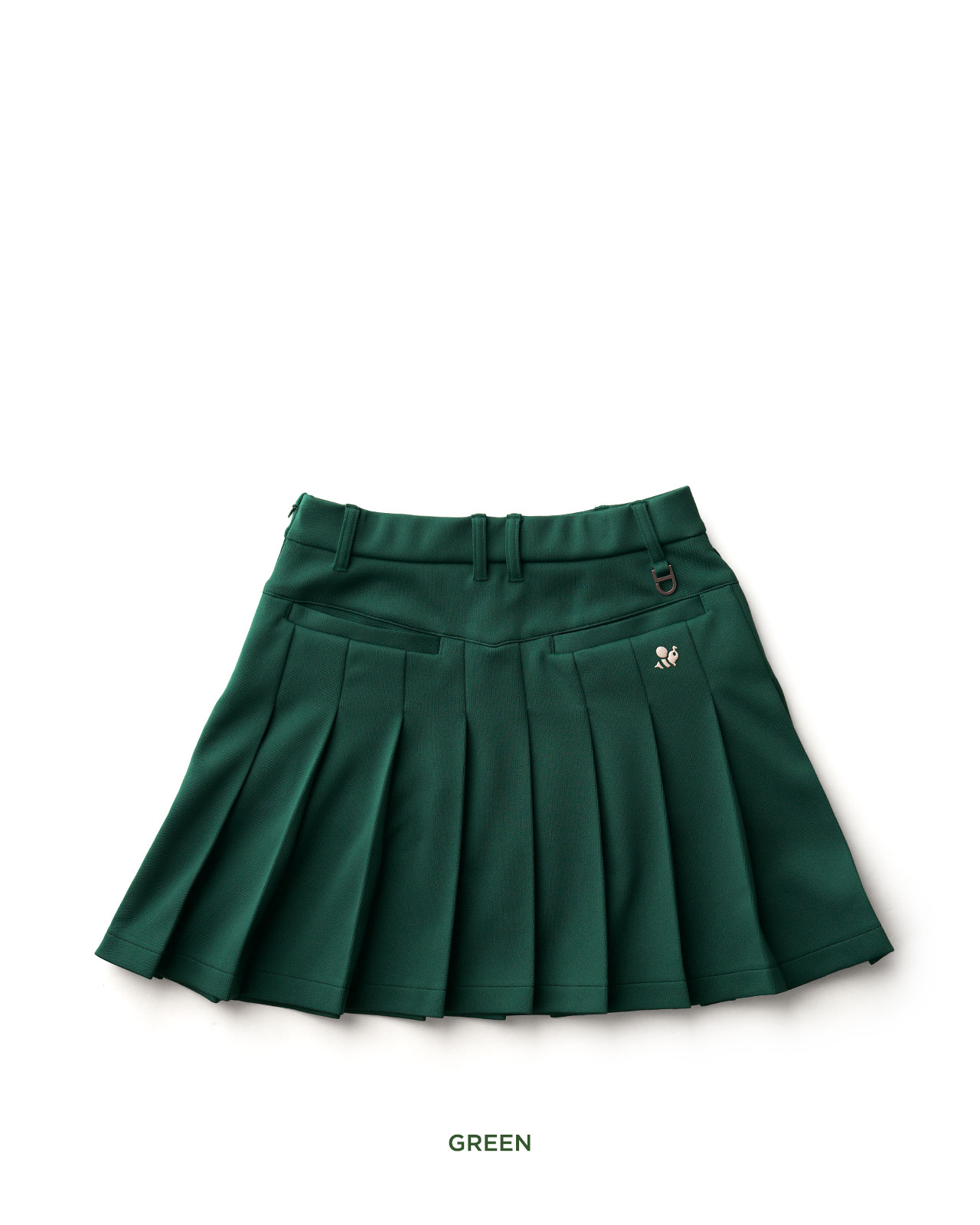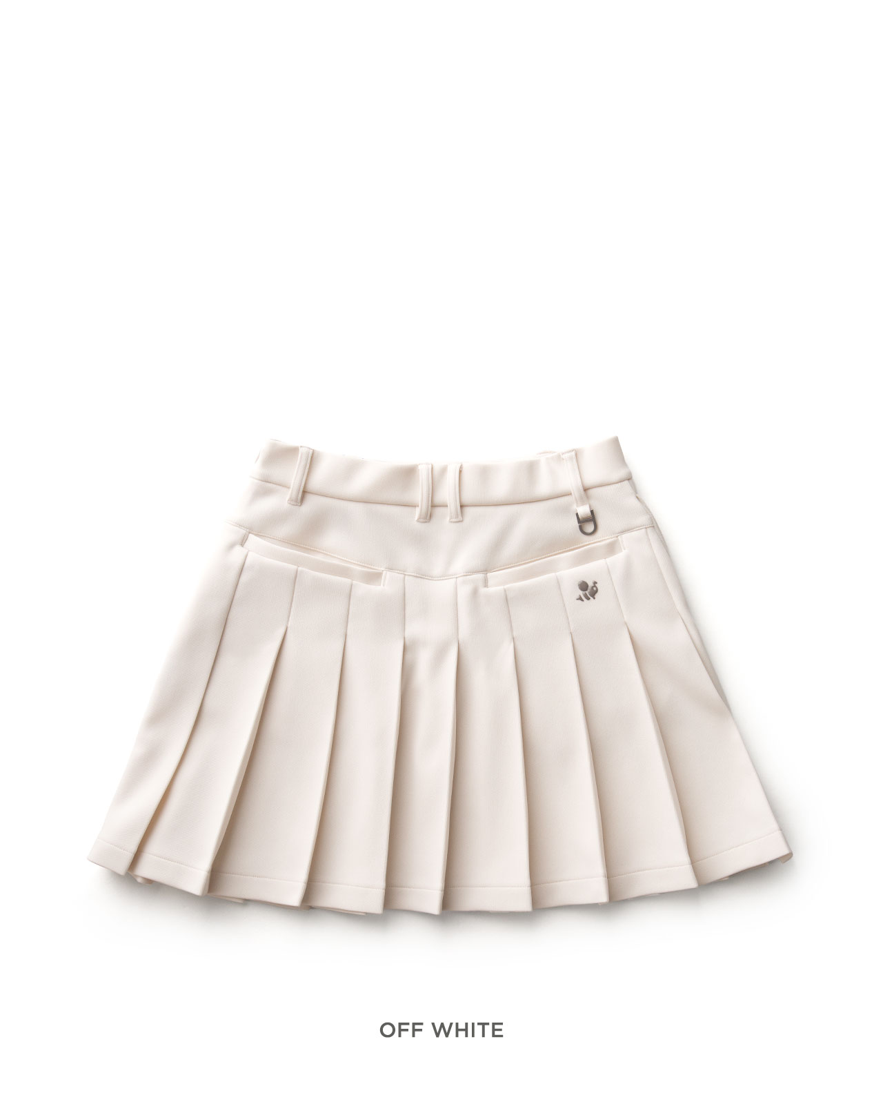 左裾に、8YARDSロゴ、右後ろポケットにはCaddieBeeの立体パーツをワンポイントで控えめに配置。主役はプリーツとなるシンプルデザインで、合わせやすさは抜群。
