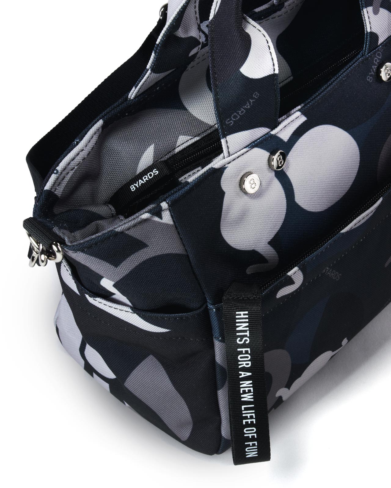 内外多数のポケットは、外側に4つ、内側に2つ。8YARDSの代名詞「TAGLINE」の引き手が程よいアクセントに。多くのポケットに、ゆとりのある高さ、そして軽いMIDは、ラウンドだけでなくデイリーにもフル活用できます。