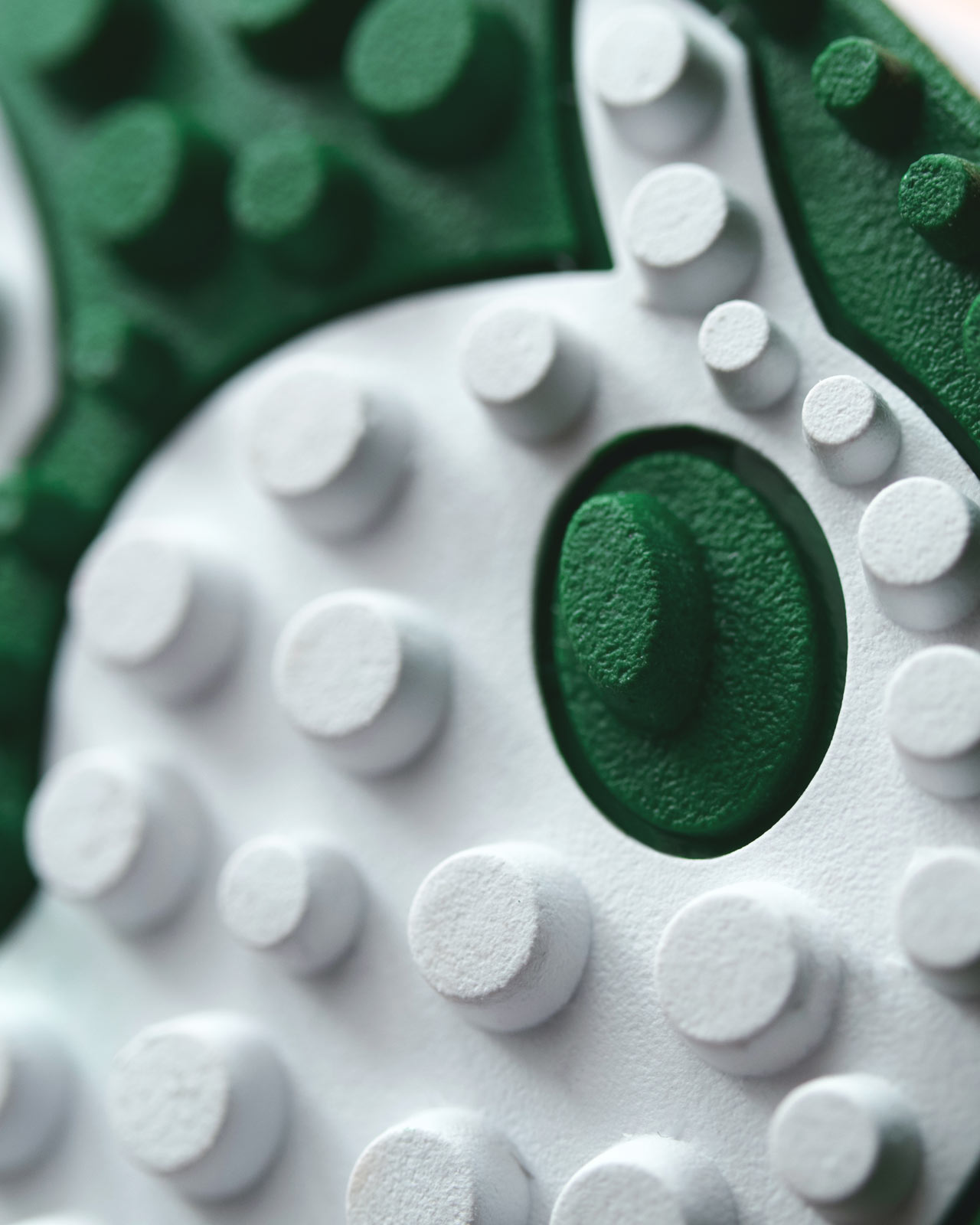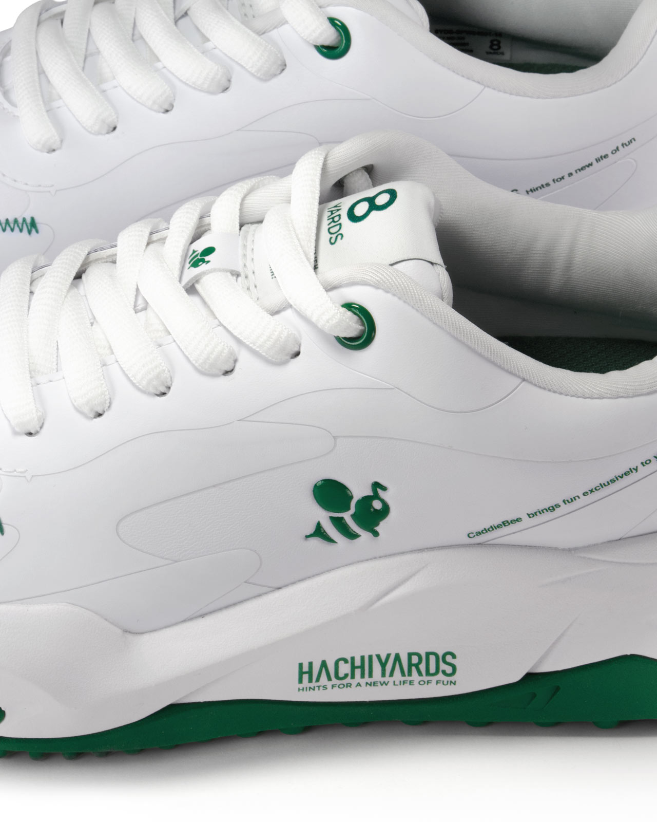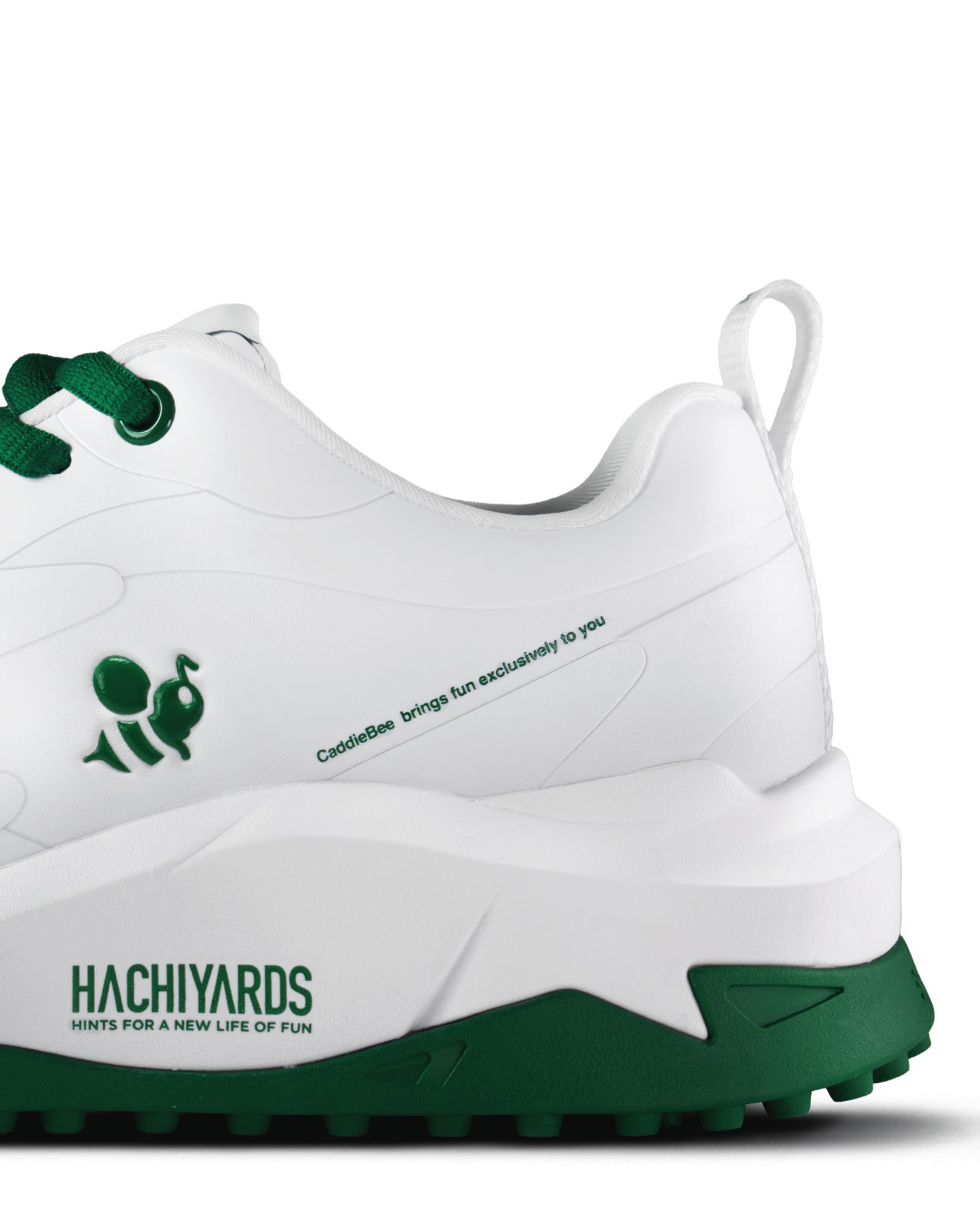 CaddieBeeの靴底ラバーソールは、鮮やかなGreenに、真っ白なCaddieBeeが引き立つハイコントラスト仕様。