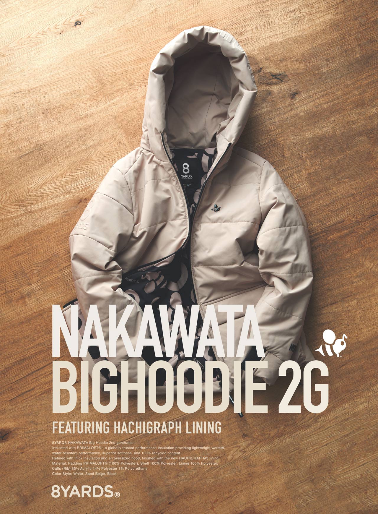 アイコンであるフードのビックタイポや、右腕の8YARDSロゴは、